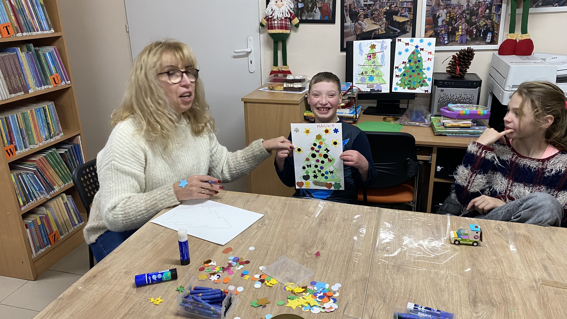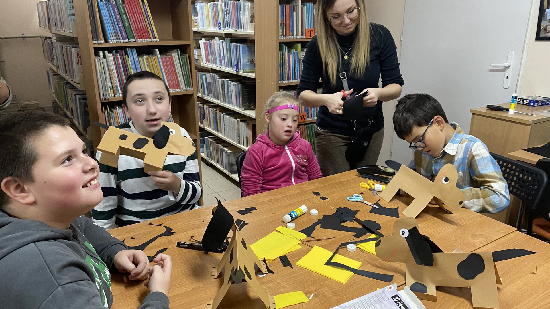 Kontynuując tradycję z poprzedniego roku w naszej bibliotece będziemy spotykać się na zajęciach plastycznych i warsztatach tematycznych z uczniami z Oddziałów Specjalnych świetlicy Szkoły Podstawowej w Chełmcu pod opieką pani Marzeny Kropiwnickiej oraz młodzieżą ze Szkoły Specjalnej przysposabiającej do pracy "Jesteś wart" pod opieką pani Anity Wójcik.