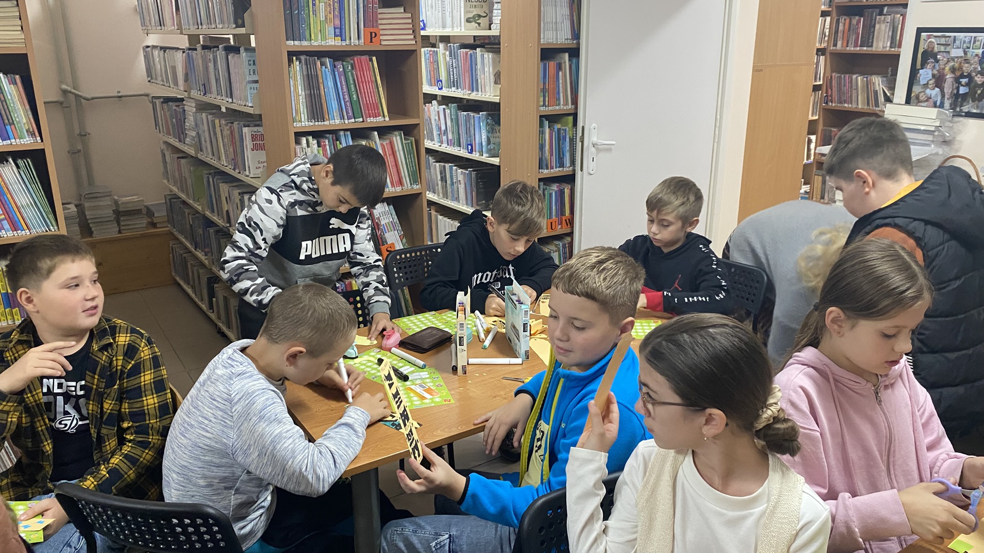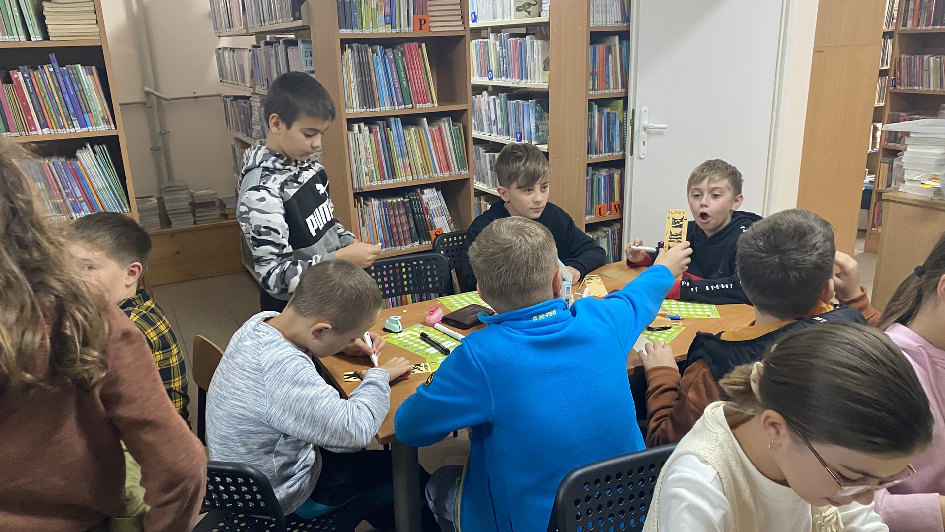 Poprzez zabawę w escape room dzieci nauczyły się zasad poruszania po bibliotece, poznały działy i sposoby odnajdywania poszczególnych książek na półce. Świetnie bawiliśmy się grając w kalambury, gdzie trzeba było odgadnąć bohatera wylosowanej książki.