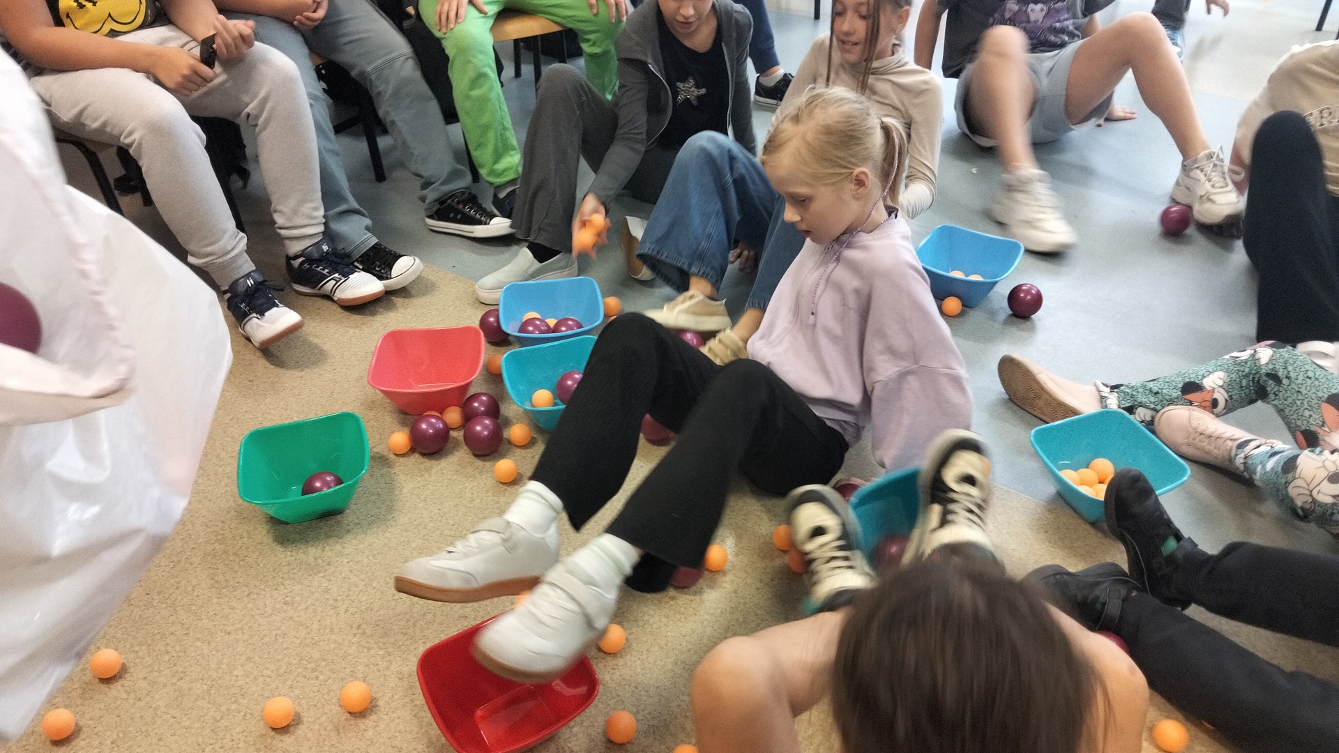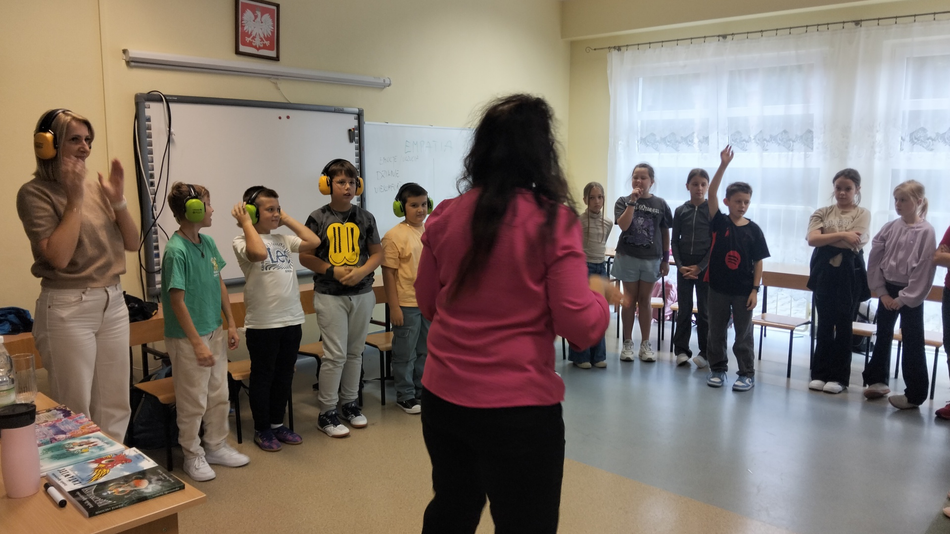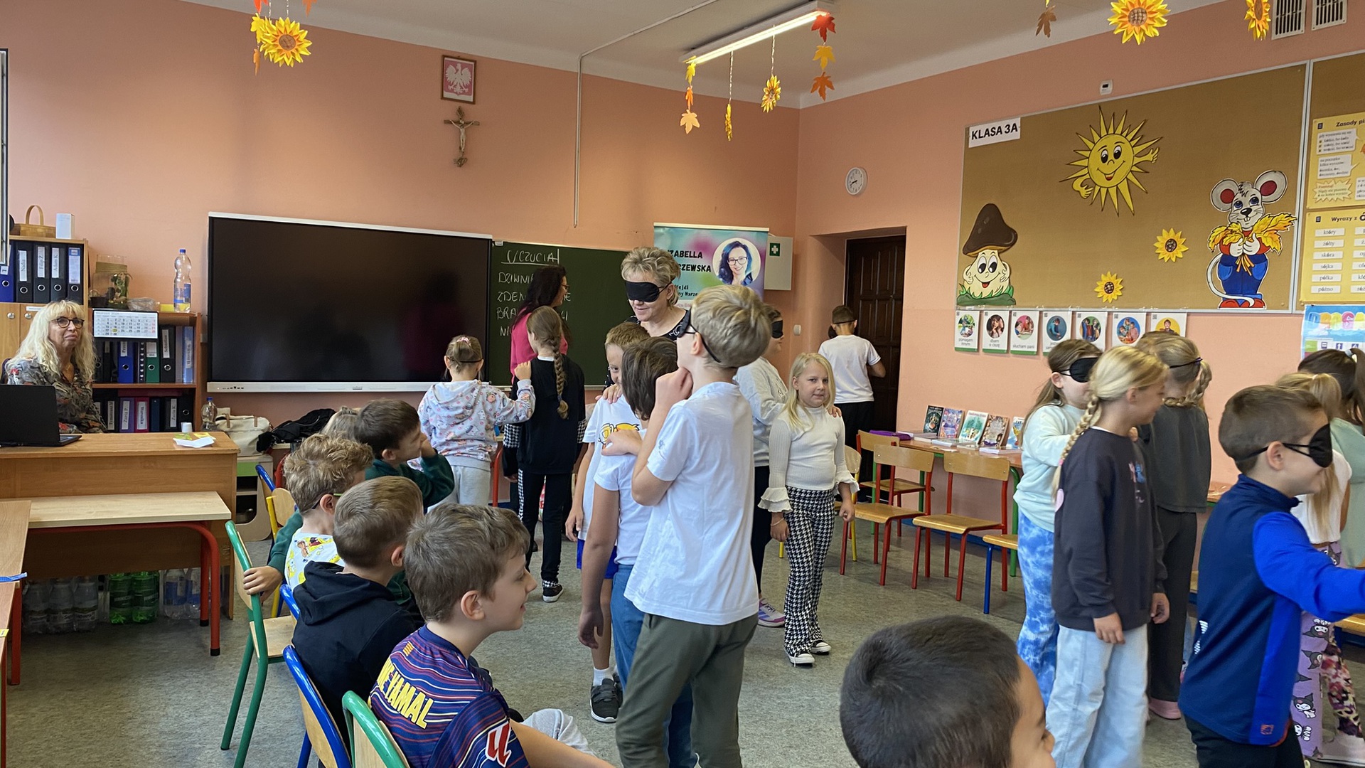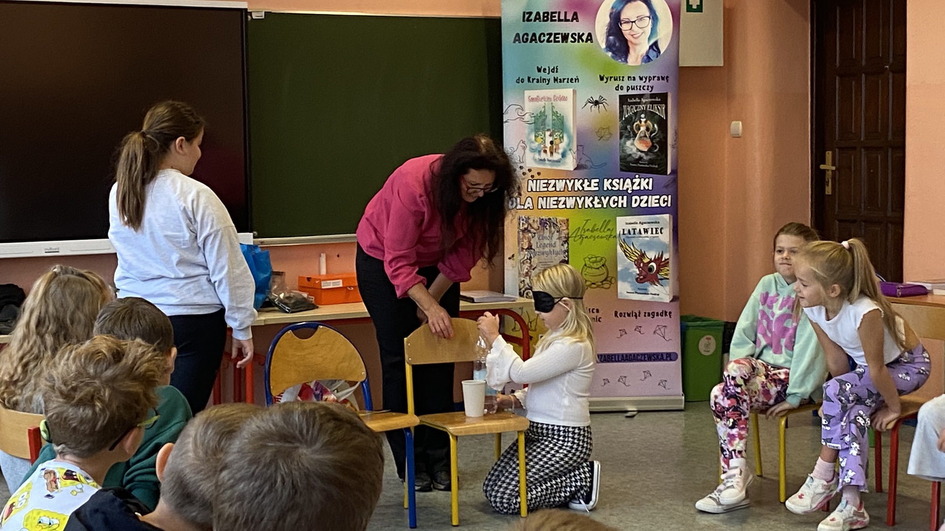 Nasz gość przeprowadził dla dzieci warsztaty oparte na treści książki "Sanatorium cudów". Uczniowie wykonywali kilkanaście zadań, które miały na celu pokazanie z jakimi wyzwaniami mierzą się w swoim życiu osoby niepełnosprawne. Choc na chwilę dzieci mogły przekonac się, jak to jest nie widzieć, nie słyszeć, nie móc się poruszać, być nadwrażliwym na dotyk.