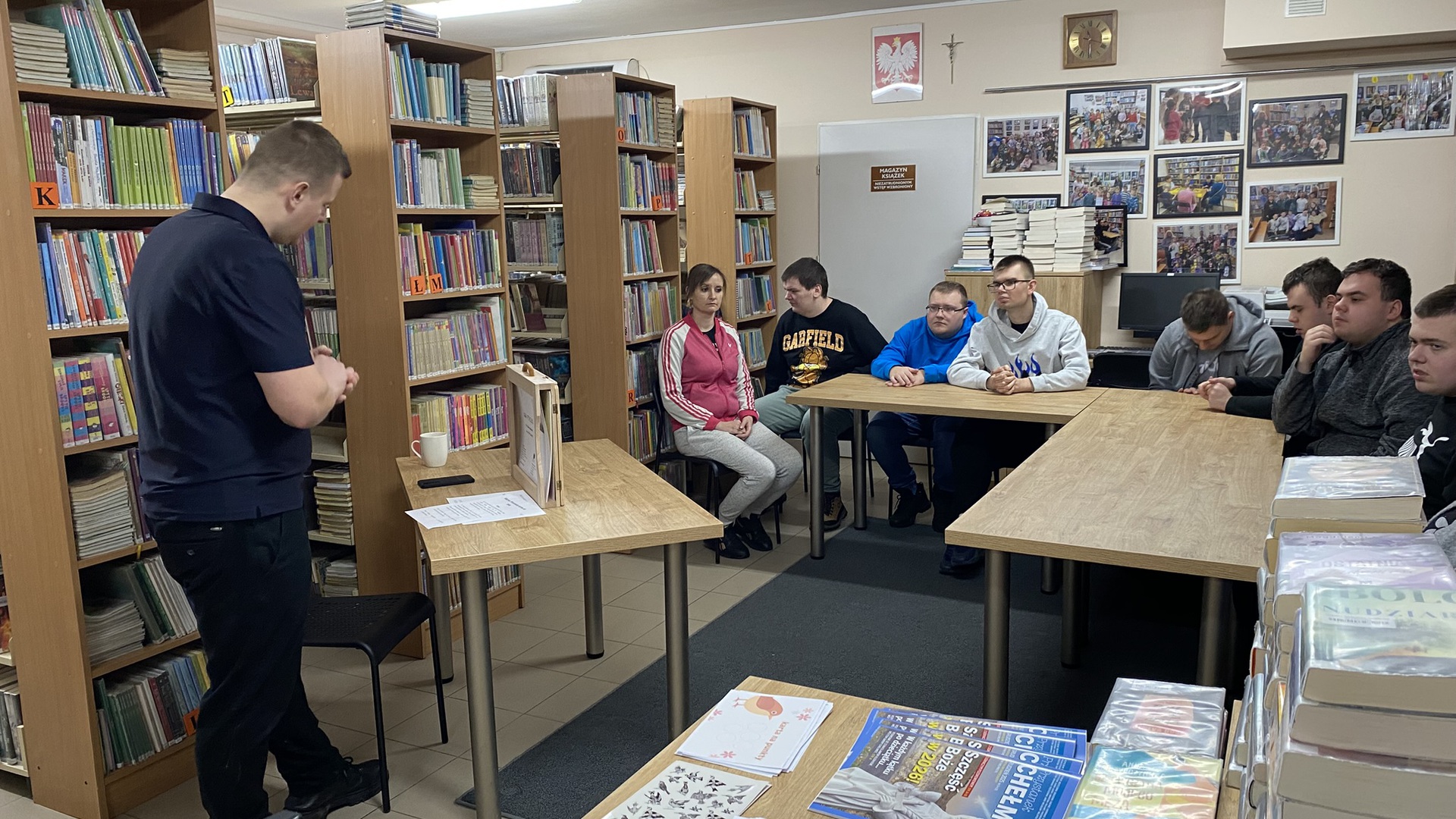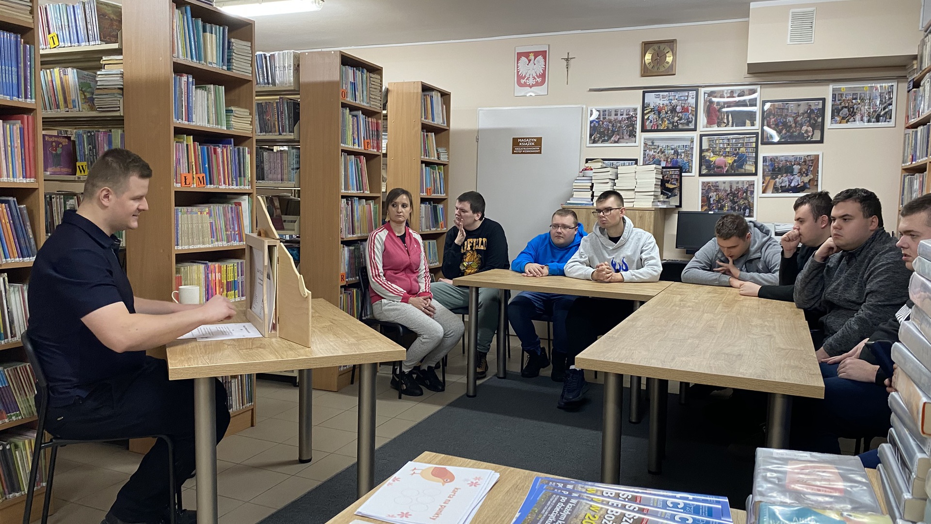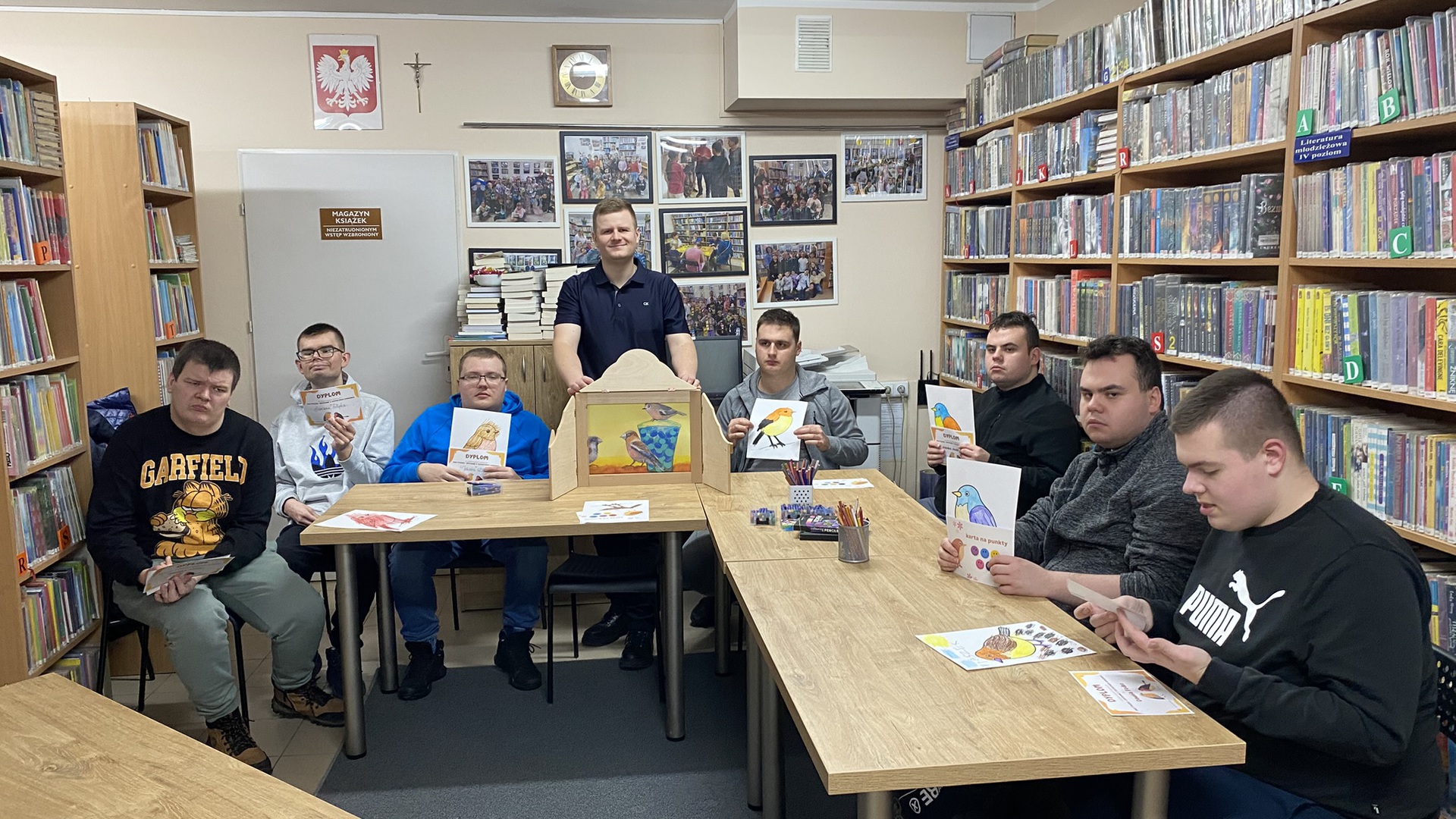 Kamishibai to technika czytania i prezentacji wywodząca się z Japonii, którą najprościej można opisać jako teatr obrazkowy. Takie właśnie przedstawienie zaprezentował w naszej bibliotece zaproszony przez nas pan Dominik. Za pomocą specjalnych kart z historią o ptaszkach, drewnianej skrzynce i nastrojowej muzyce wprowadził uczniów w świat japońskiego teatru. Były też pytania i konkursy z dyplomami.