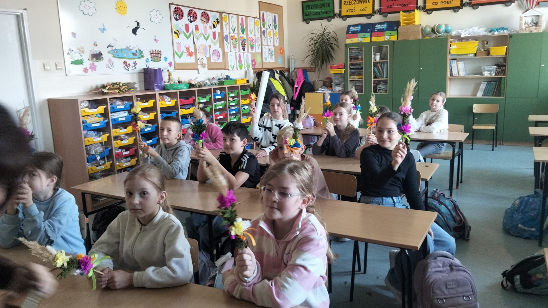 W części teoretycznej dzieci wysłuchały fragmentu nowej książki pani Izy pt."Wiosna". Poznali zajęcia towarzyszące codziennemu funkcjonowaniu na wsi budzącej się do życia po zimowym letargu. Dowiedziały się jak wyglądały przygotowania do świąt, jakie były zwyczaje i jak wyglądały obrzędy związane ze Świętami Wielkanocnymi. Część z nich dzieci doskonale znają i praktykują, ale były też takie, o których słyszały po raz pierwszy.