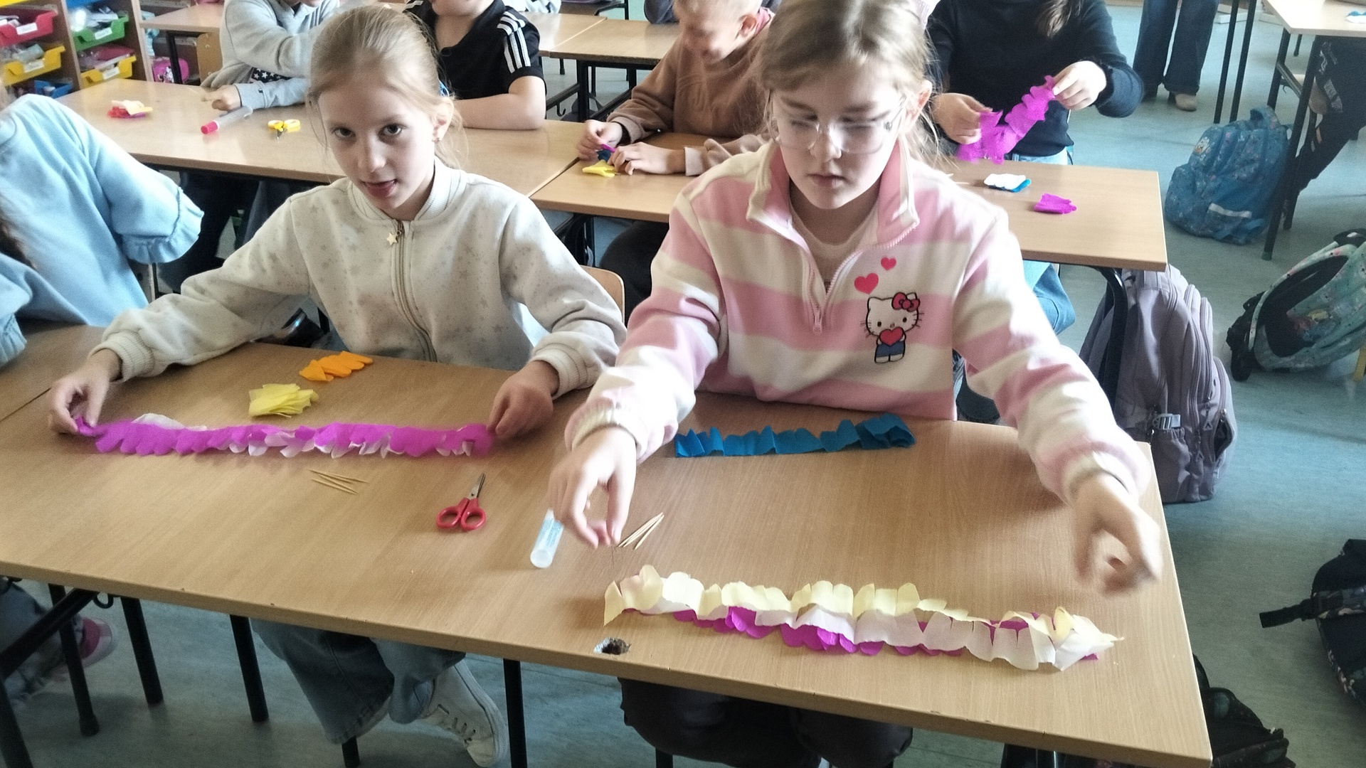 W części praktycznej zajęć uczestnicy robili palmy z własnoręcznie zrobionych kwiatów , bibuły i wstążek, które w nadchodzącą niedzielę palmową mogli zabrać do kościoła.