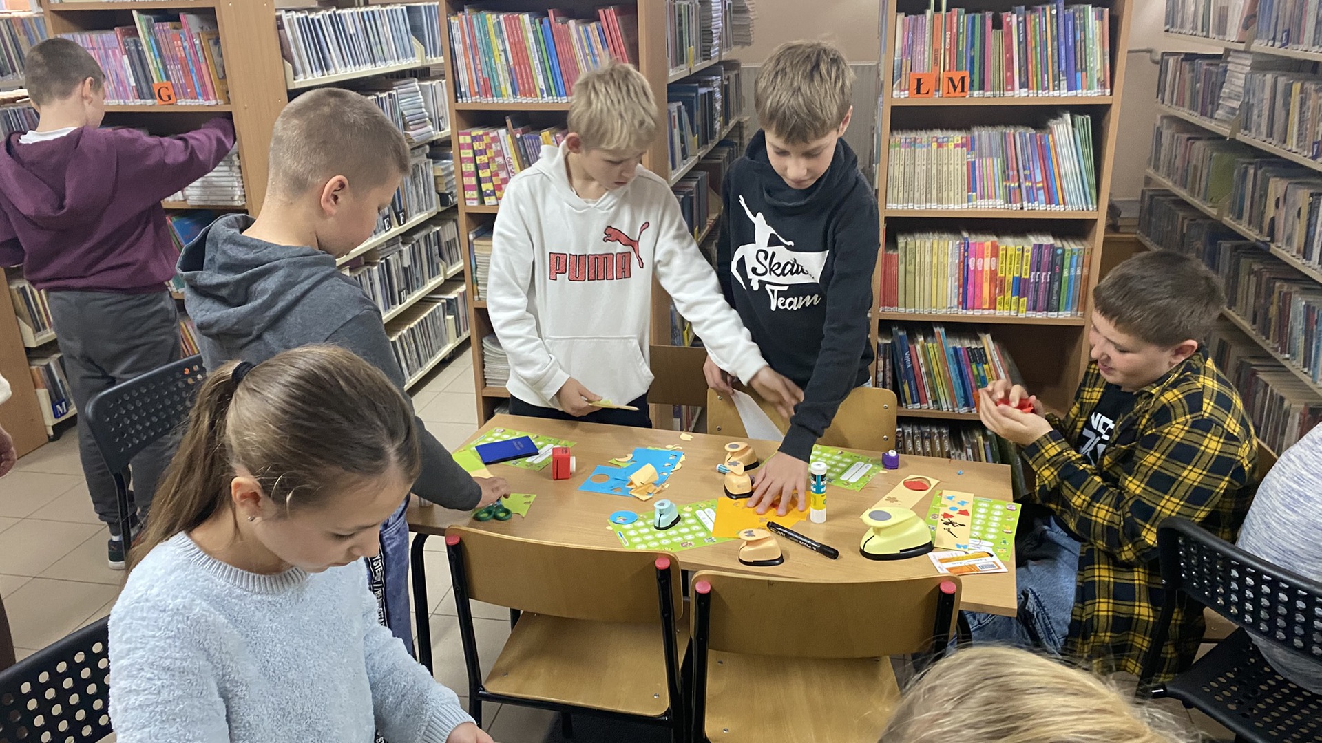 Poprzez zabawę w escape room dzieci nauczyły się zasad poruszania po bibliotece, poznały działy i sposoby odnajdywania poszczególnych książek na półce. Świetnie bawiliśmy się grając w kalambury, gdzie trzeba było odgadnąć bohatera wylosowanej książki.