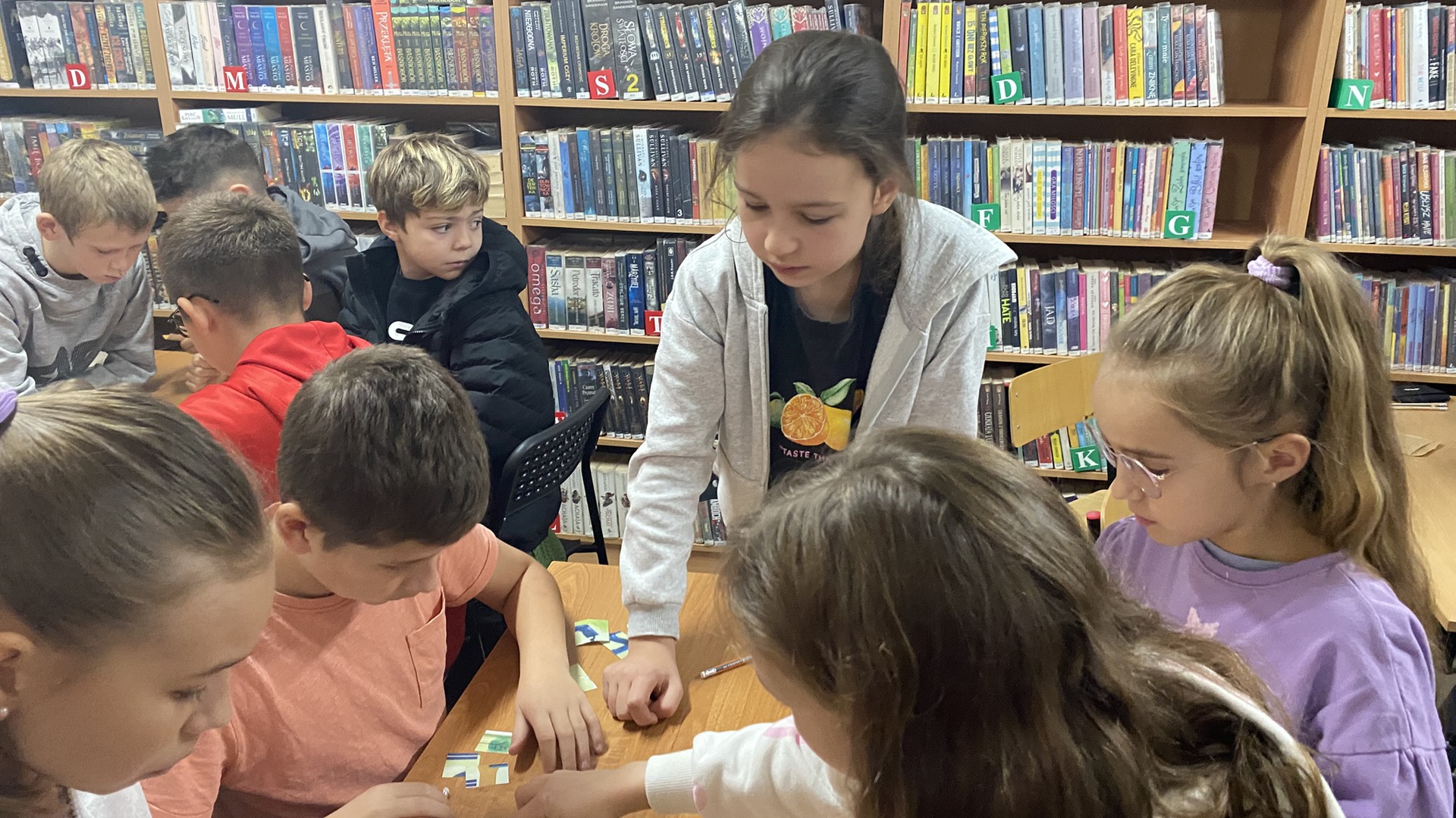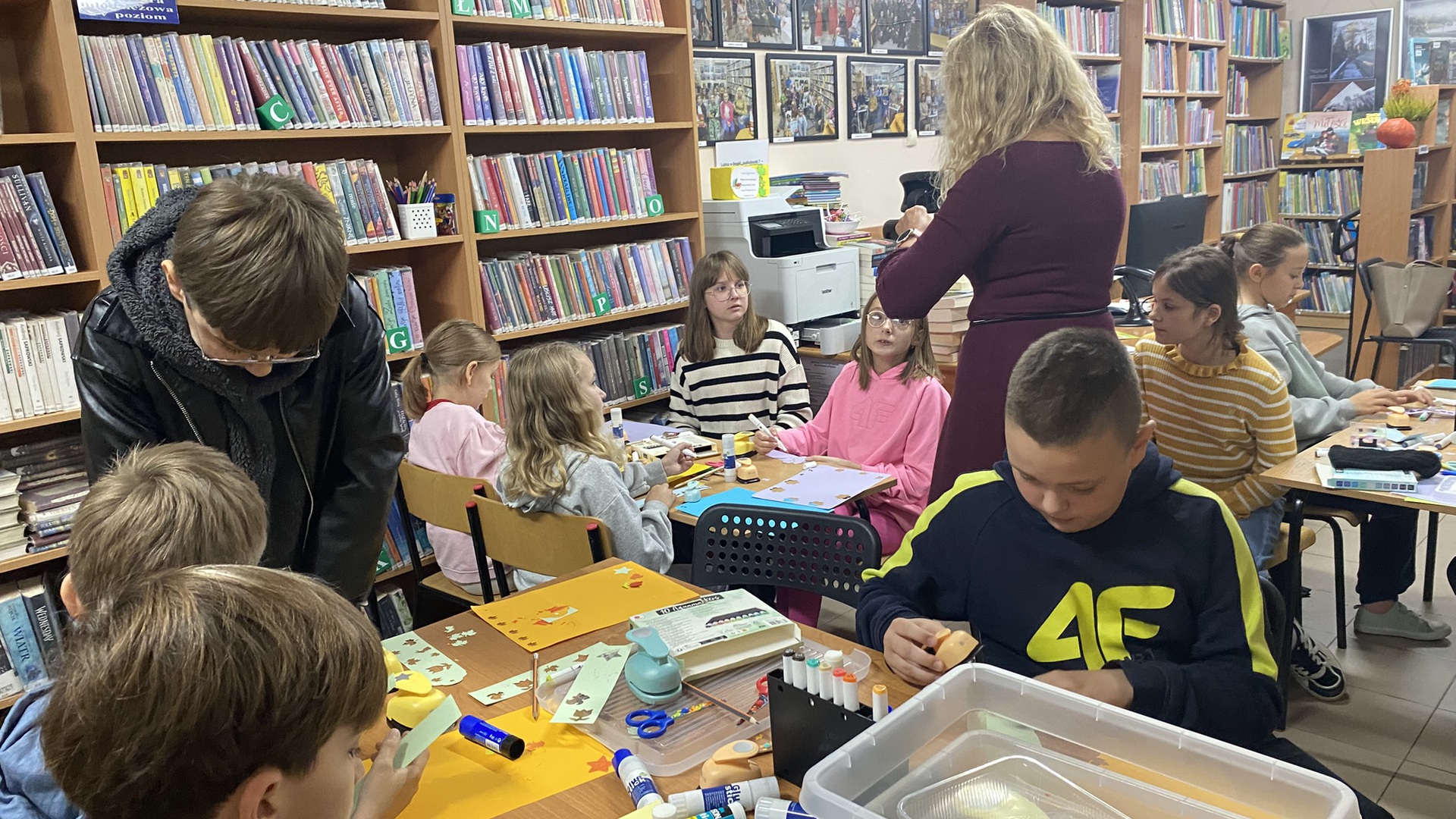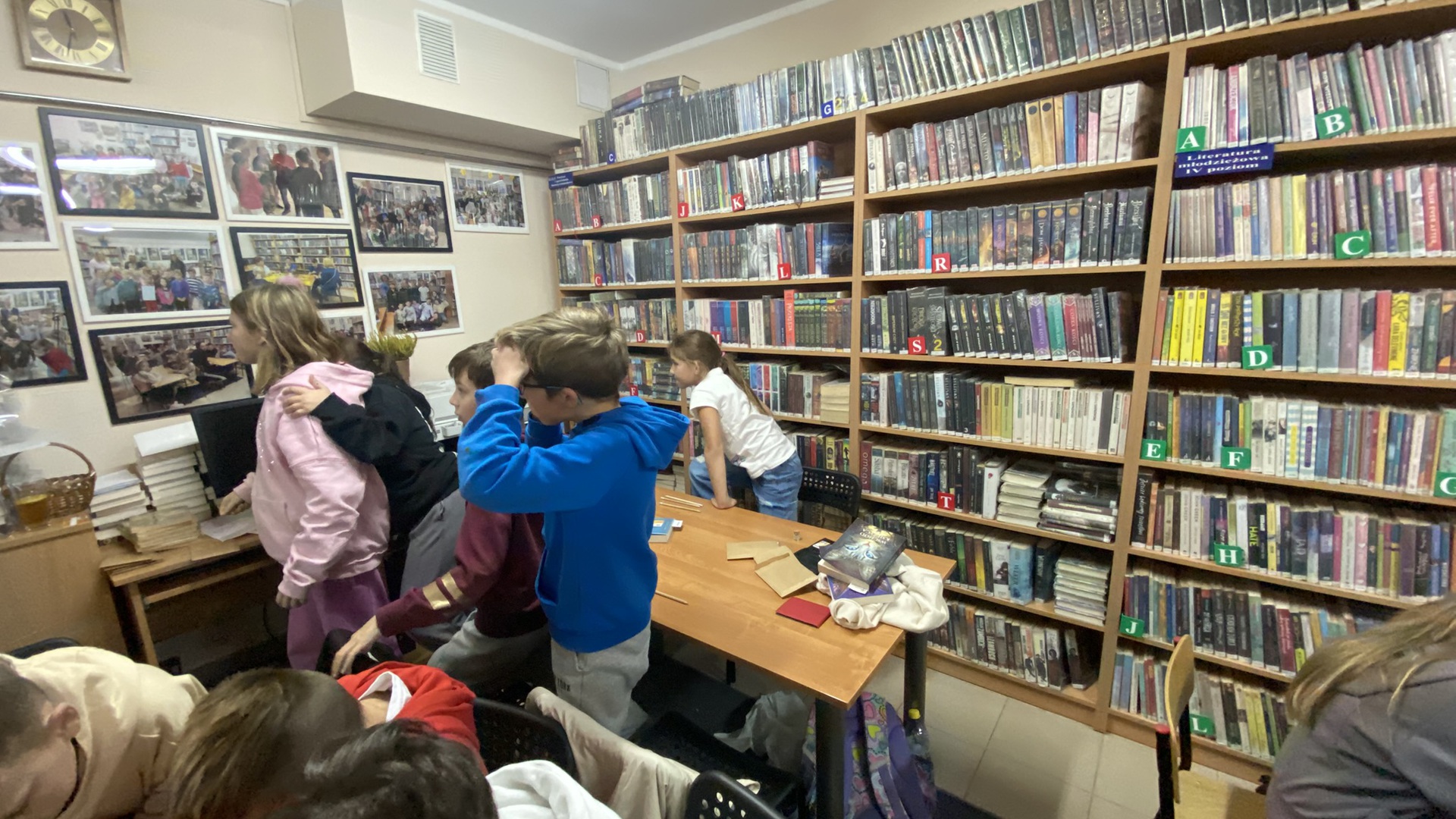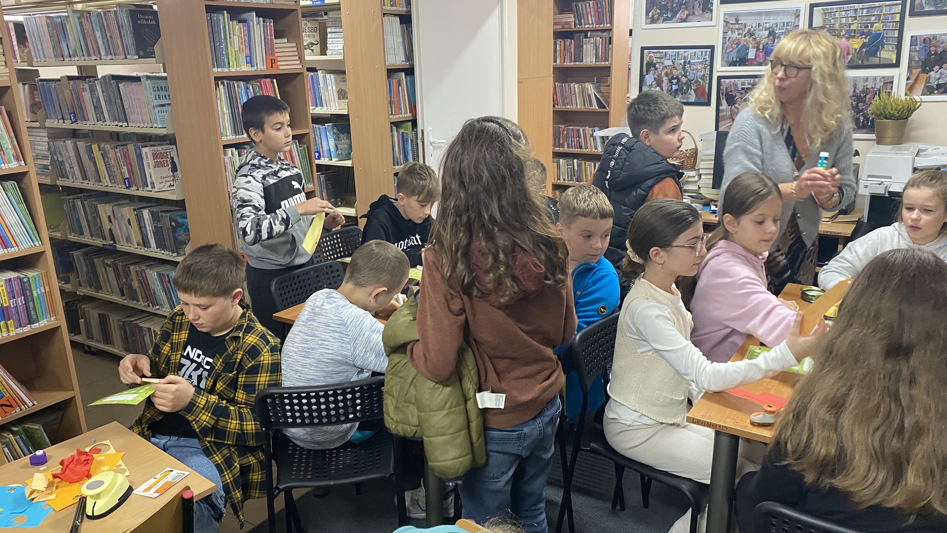 W październiku do Gminnej Biblioteki Publicznej w Chełmcu w ramach lekcji bibliotecznych zostali zaproszeni uczniowie klas IV Szkoły Podstawowej w Chełmcu. Pod opieką polonistek - p.Teresy Gwiżdż, p.Wioletty Janoty oraz p.Wioletty Monicy czwartoklasiści mogli zwiedzić naszą bibliotekę, dowiedzieć się o historii, zbiorach oraz pracy bibliotekarza. Dzieci uczestniczyły w zabawie "Escape room", która sprawiła im sporo frajdy, a także zrobili własne, kolorowe zakładki do książek. Punktem kulminacyjnym spotkania było ogłoszenie konkursu "Zostań Superczytelnikiem", którego celem jest zachęcenie dzieci do korzystania z naszego księgozbioru, rozbudzenie zainteresowań czytelniczych i literackich. Aby wziąć udział w konkursie uczniowie zostali członkami naszej biblioteki, otrzymali karty czytelnika oraz karty konkursowe, na których będą zbierać naklejki potwierdzające czytanie. Na najlepszych czekają nagrody.