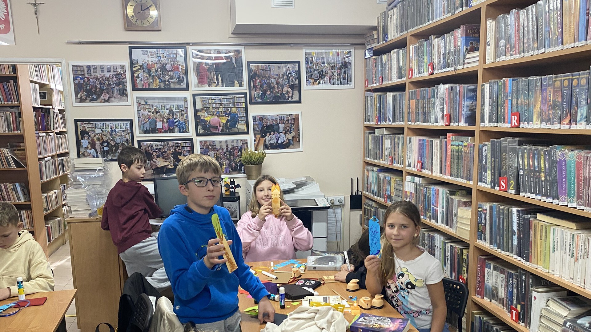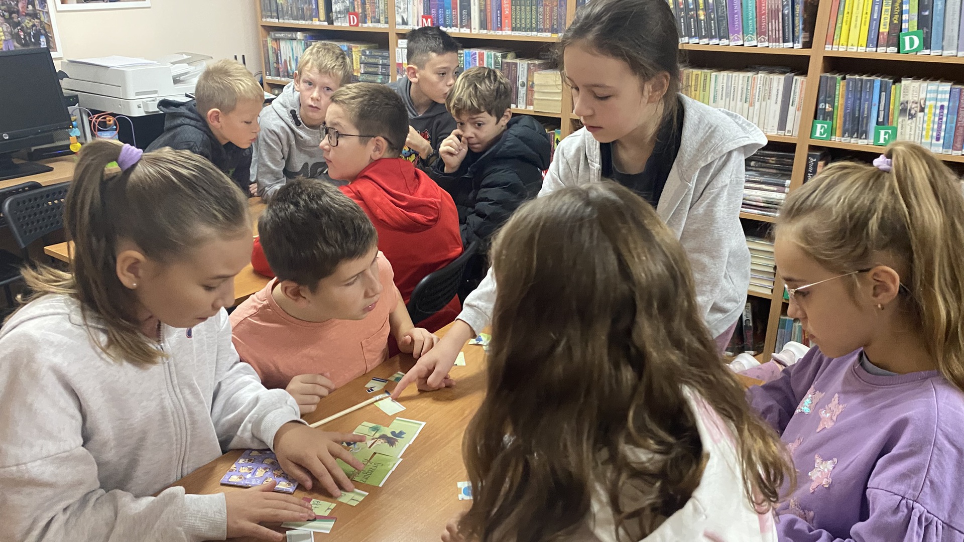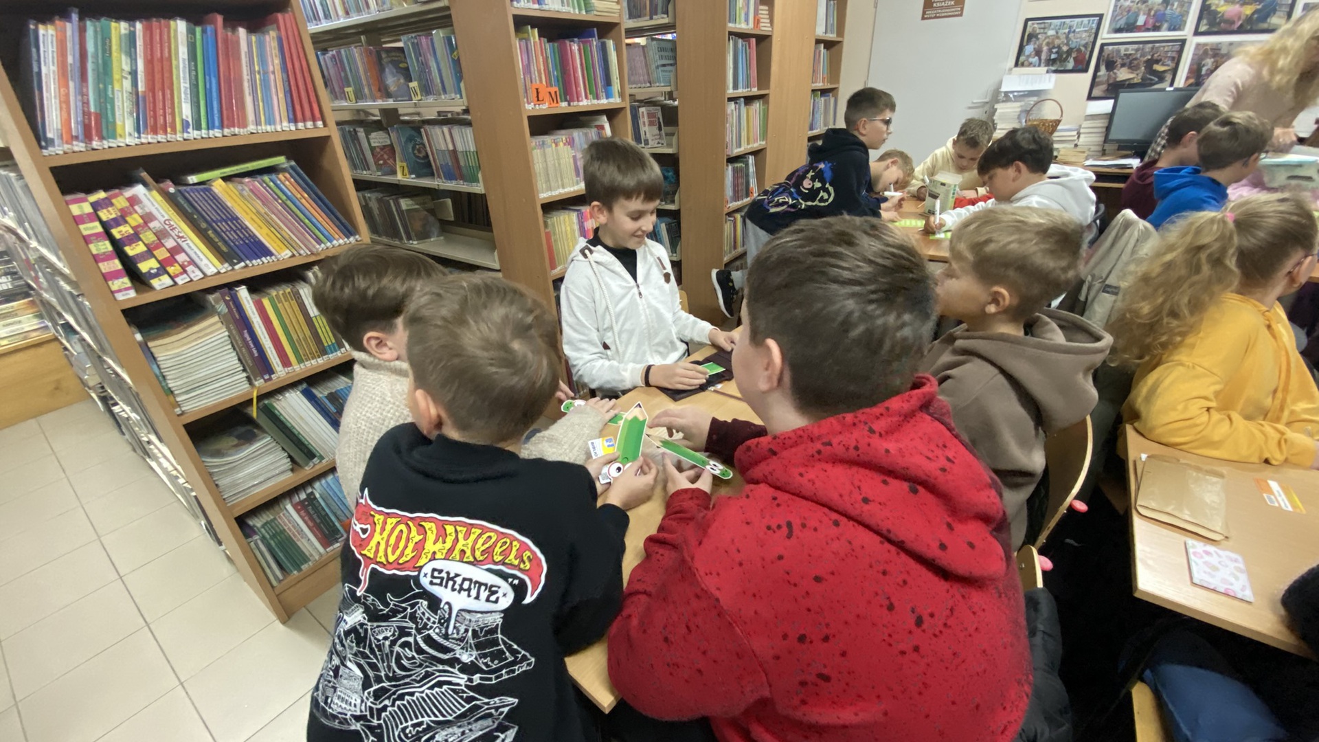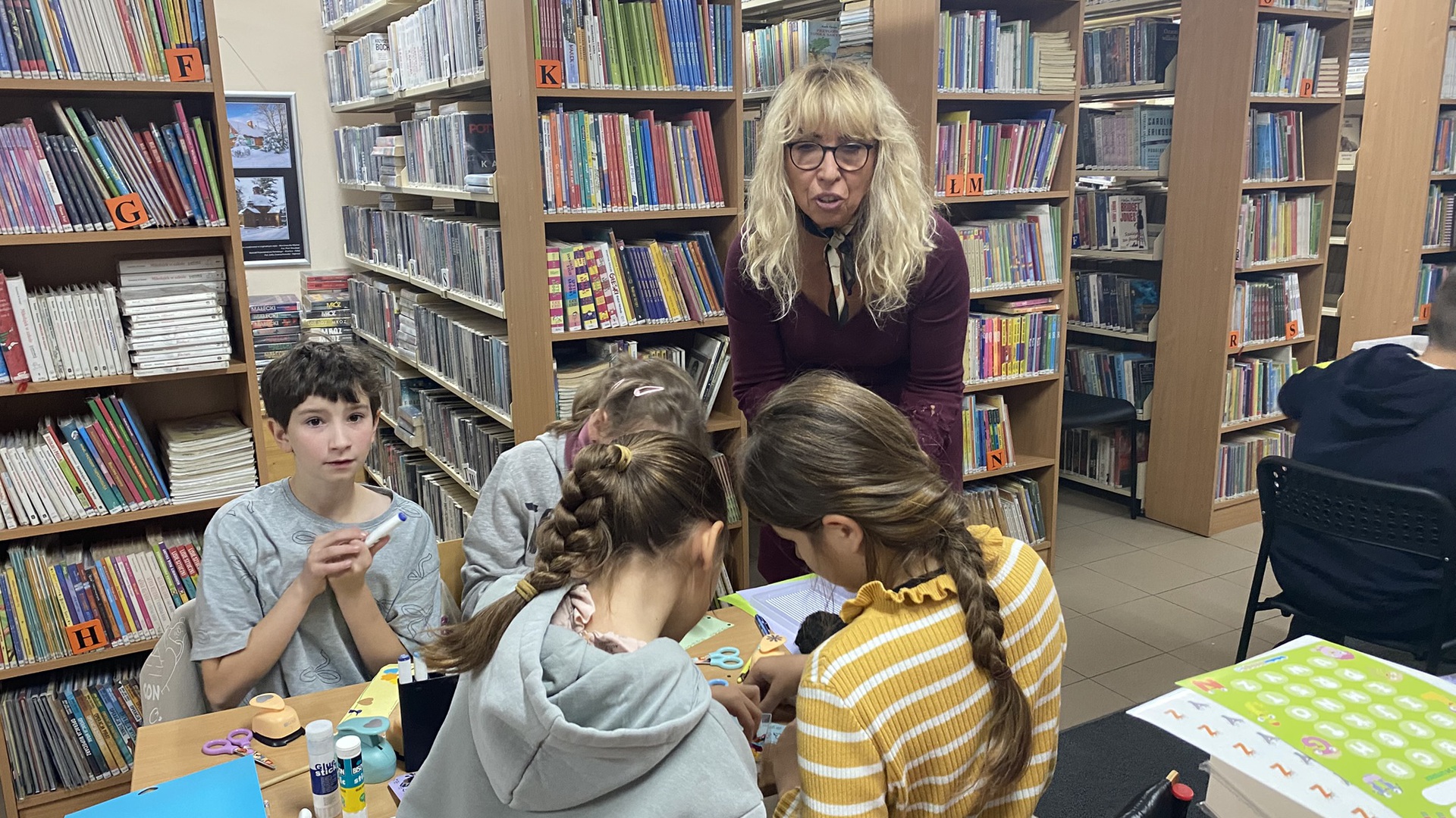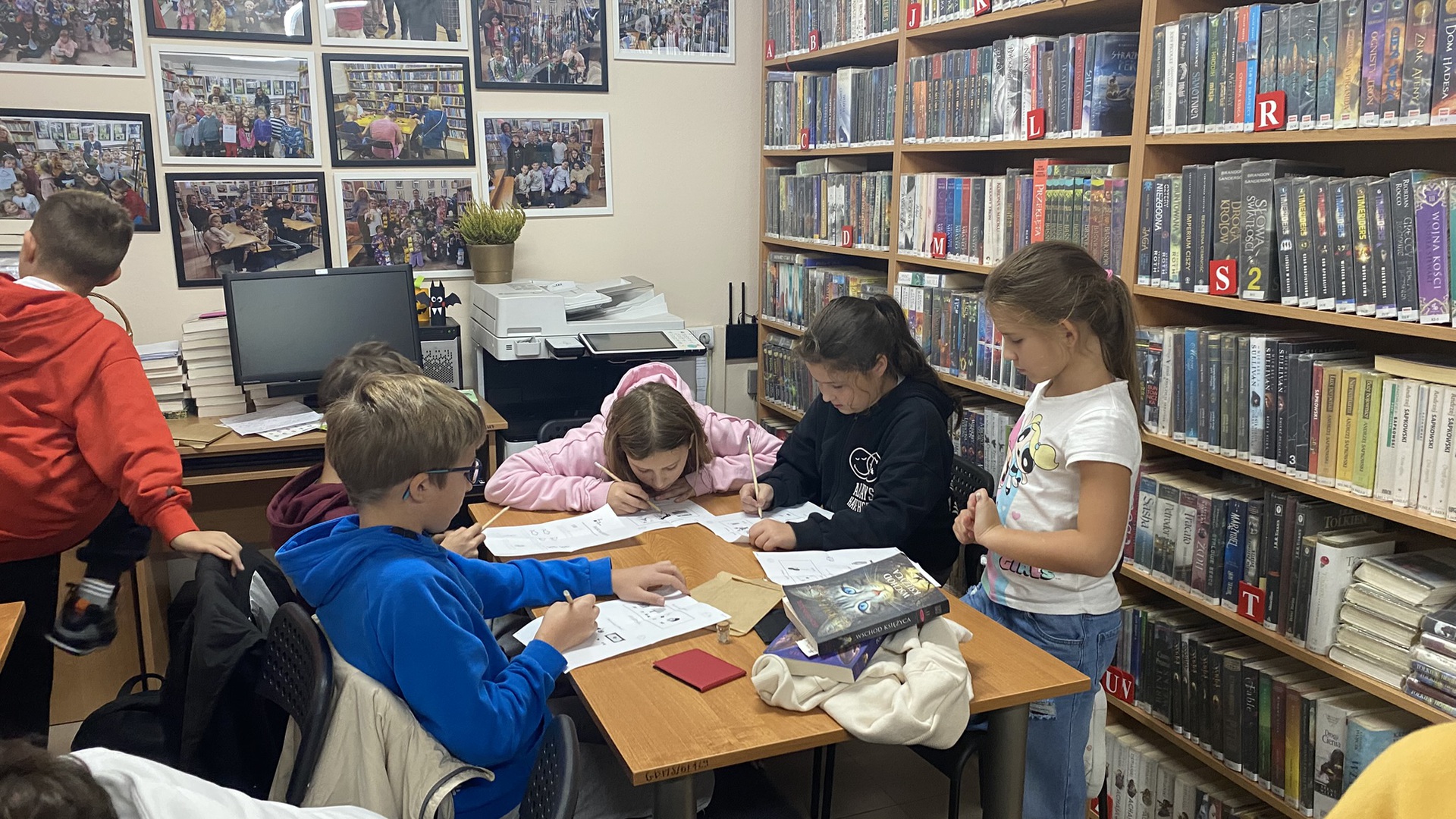 W październiku do Gminnej Biblioteki Publicznej w Chełmcu w ramach lekcji bibliotecznych zostali zaproszeni uczniowie klas IV Szkoły Podstawowej w Chełmcu. Pod opieką polonistek - p.Teresy Gwiżdż, p.Wioletty Janoty oraz p.Wioletty Monicy czwartoklasiści mogli zwiedzić naszą bibliotekę, dowiedzieć się o historii, zbiorach oraz pracy bibliotekarza. Dzieci uczestniczyły w zabawie "Escape room", która sprawiła im sporo frajdy, a także zrobili własne, kolorowe zakładki do książek. Punktem kulminacyjnym spotkania było ogłoszenie konkursu "Zostań Superczytelnikiem", którego celem jest zachęcenie dzieci do korzystania z naszego księgozbioru, rozbudzenie zainteresowań czytelniczych i literackich. Aby wziąć udział w konkursie uczniowie zostali członkami naszej biblioteki, otrzymali karty czytelnika oraz karty konkursowe, na których będą zbierać naklejki potwierdzające czytanie. Na najlepszych czekają nagrody.