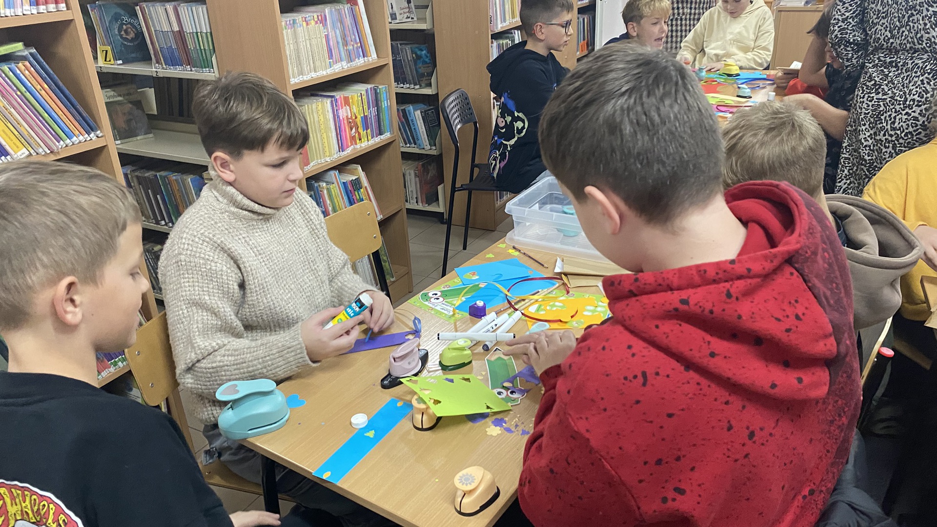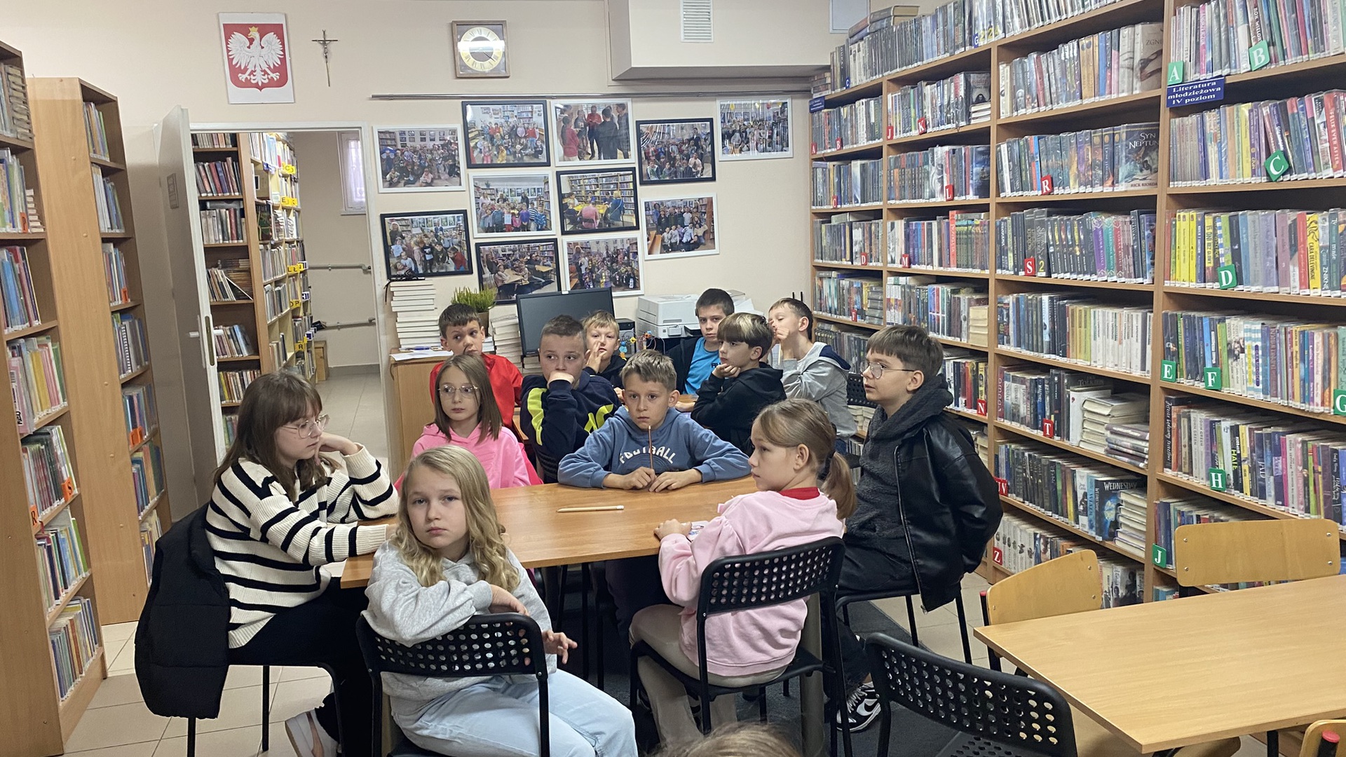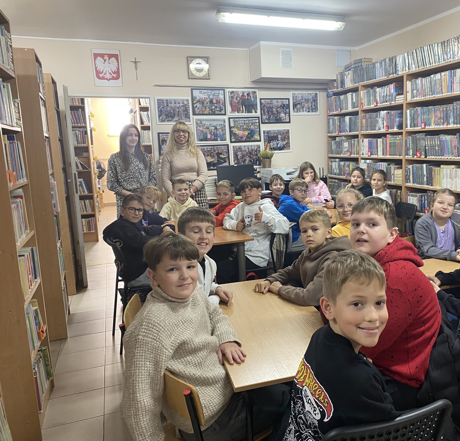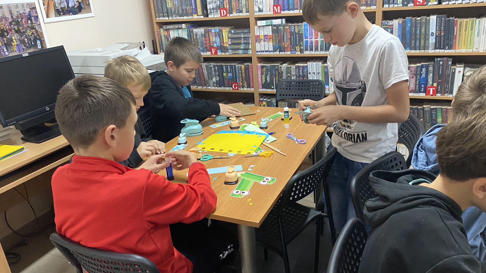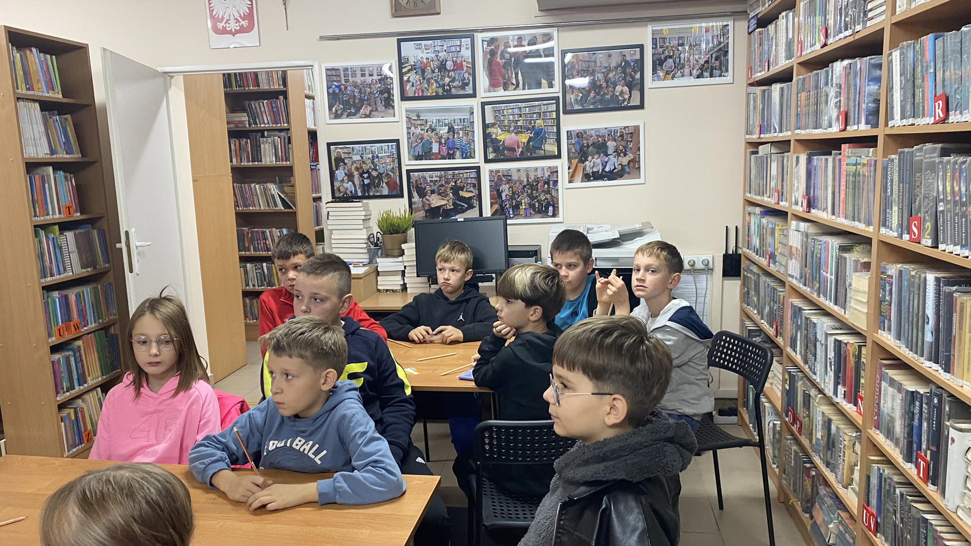 W październiku do Gminnej Biblioteki Publicznej w Chełmcu w ramach lekcji bibliotecznych zostali zaproszeni uczniowie klas IV Szkoły Podstawowej w Chełmcu. Pod opieką polonistek - p.Teresy Gwiżdż, p.Wioletty Janoty oraz p.Wioletty Monicy czwartoklasiści mogli zwiedzić naszą bibliotekę, dowiedzieć się o historii, zbiorach oraz pracy bibliotekarza. Dzieci uczestniczyły w zabawie "Escape room", która sprawiła im sporo frajdy, a także zrobili własne, kolorowe zakładki do książek. Punktem kulminacyjnym spotkania było ogłoszenie konkursu "Zostań Superczytelnikiem", którego celem jest zachęcenie dzieci do korzystania z naszego księgozbioru, rozbudzenie zainteresowań czytelniczych i literackich. Aby wziąć udział w konkursie uczniowie zostali członkami naszej biblioteki, otrzymali karty czytelnika oraz karty konkursowe, na których będą zbierać naklejki potwierdzające czytanie. Na najlepszych czekają nagrody.