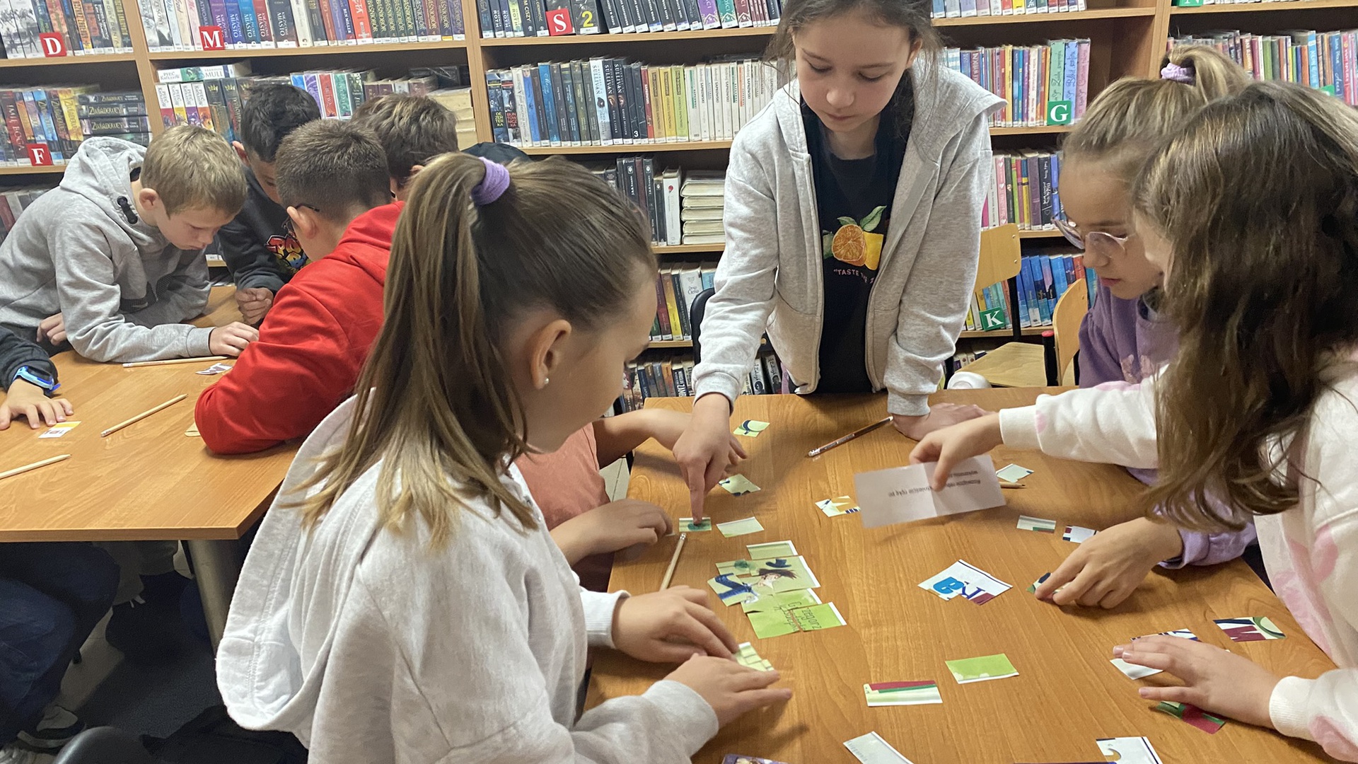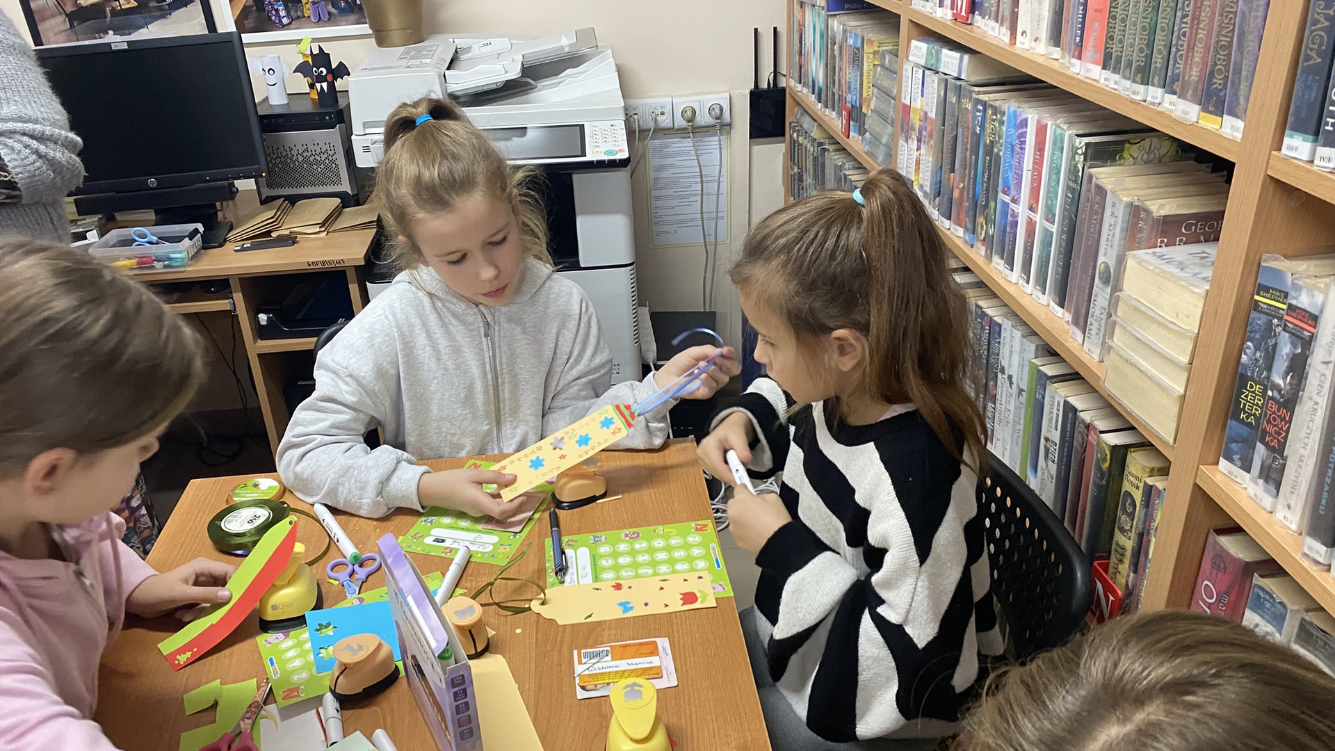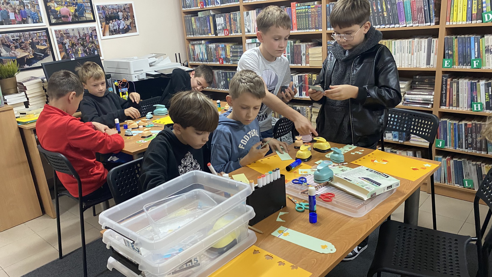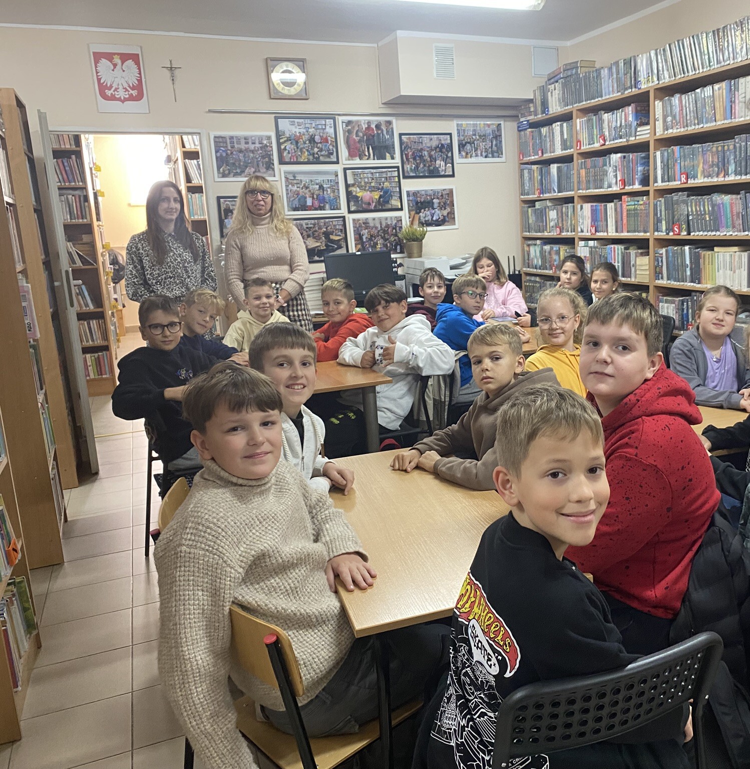 W październiku do Gminnej Biblioteki Publicznej w Chełmcu w ramach lekcji bibliotecznych zostali zaproszeni uczniowie klas IV Szkoły Podstawowej w Chełmcu. Pod opieką polonistek - p.Teresy Gwiżdż, p.Wioletty Janoty oraz p.Wioletty Monicy czwartoklasiści mogli zwiedzić naszą bibliotekę, dowiedzieć się o historii, zbiorach oraz pracy bibliotekarza. Dzieci uczestniczyły w zabawie "Escape room", która sprawiła im sporo frajdy, a także zrobili własne, kolorowe zakładki do książek. Punktem kulminacyjnym spotkania było ogłoszenie konkursu "Zostań Superczytelnikiem", którego celem jest zachęcenie dzieci do korzystania z naszego księgozbioru, rozbudzenie zainteresowań czytelniczych i literackich. Aby wziąć udział w konkursie uczniowie zostali członkami naszej biblioteki, otrzymali karty czytelnika oraz karty konkursowe, na których będą zbierać naklejki potwierdzające czytanie. Na najlepszych czekają nagrody.