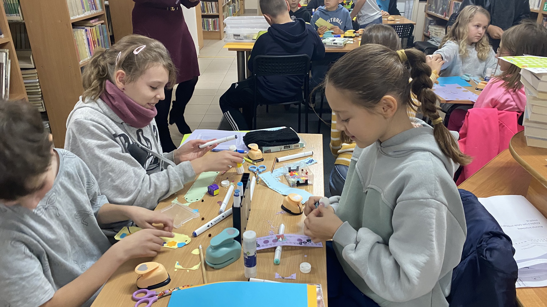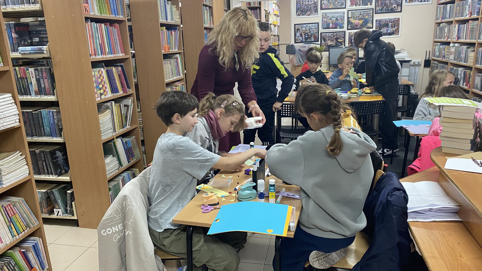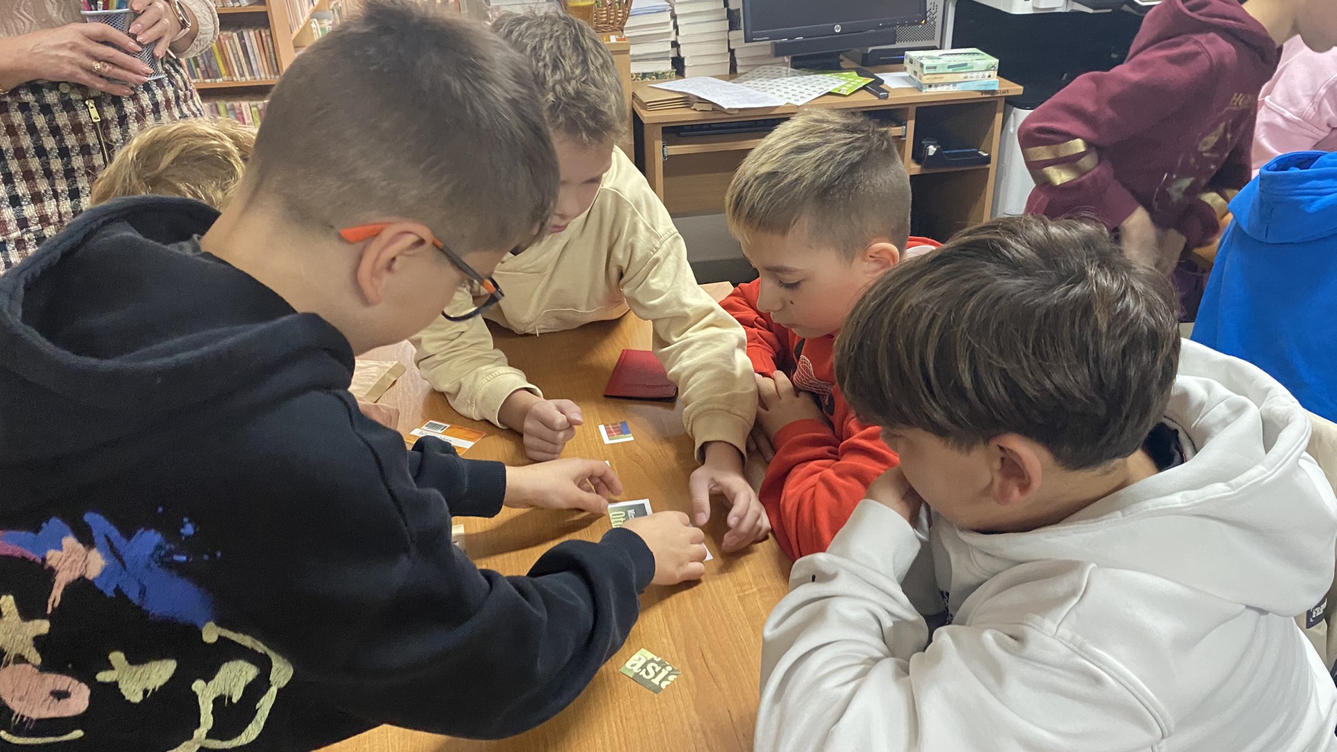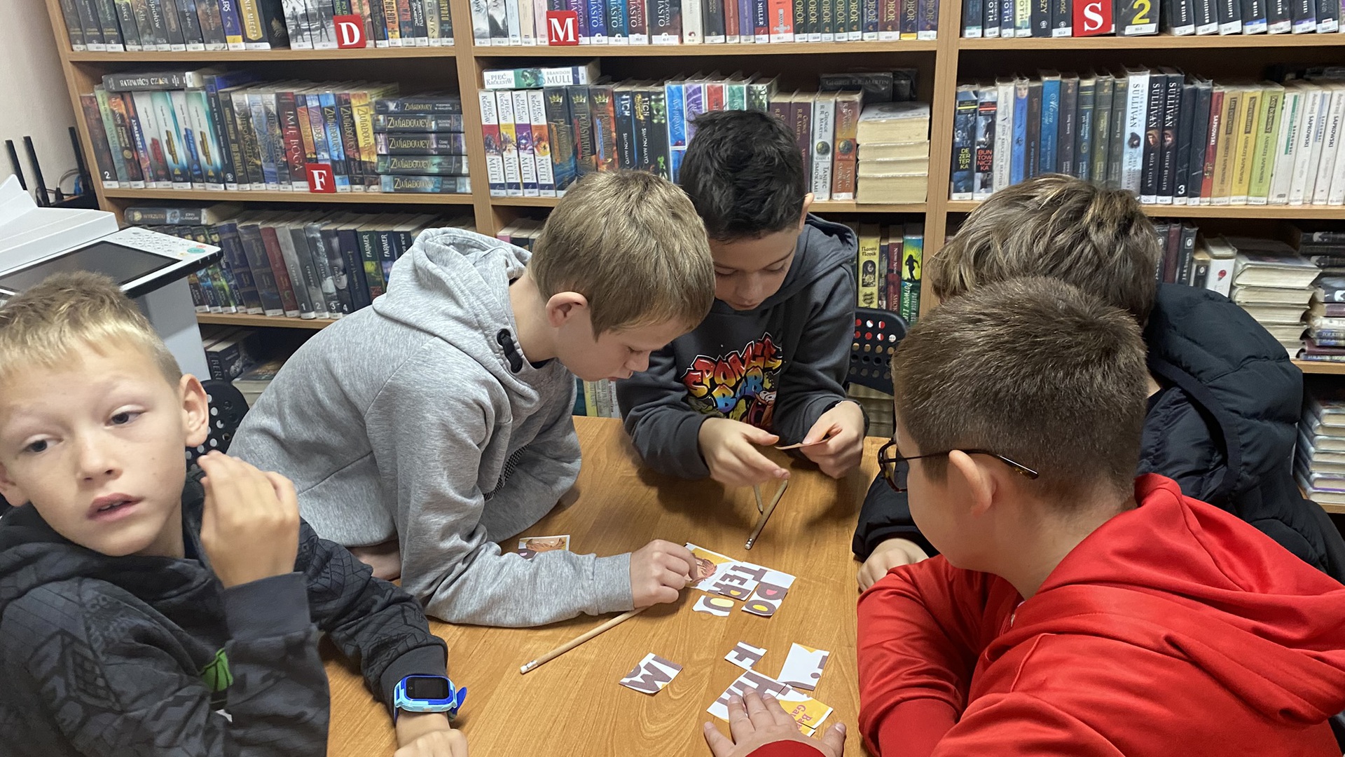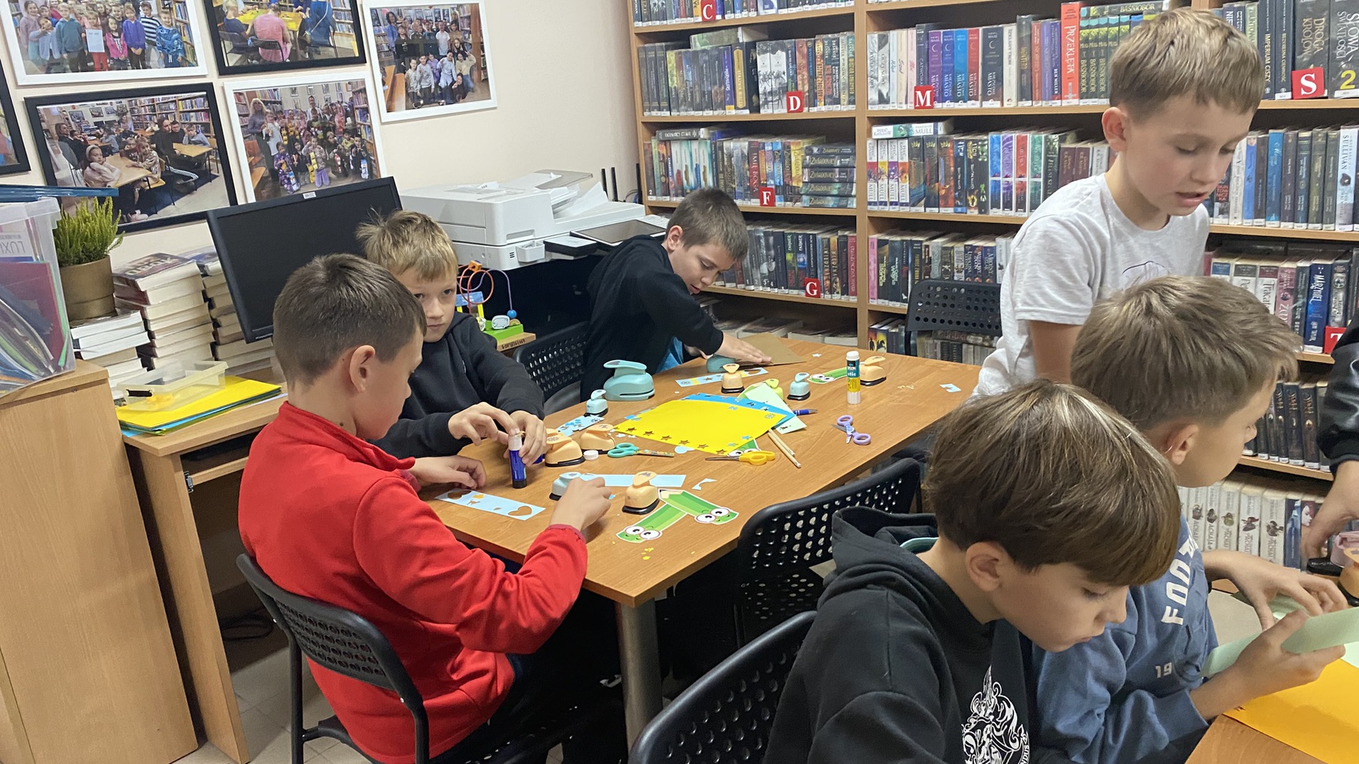 W październiku do Gminnej Biblioteki Publicznej w Chełmcu w ramach lekcji bibliotecznych zostali zaproszeni uczniowie klas IV Szkoły Podstawowej w Chełmcu. Pod opieką polonistek - p.Teresy Gwiżdż, p.Wioletty Janoty oraz p.Wioletty Monicy czwartoklasiści mogli zwiedzić naszą bibliotekę, dowiedzieć się o historii, zbiorach oraz pracy bibliotekarza. Dzieci uczestniczyły w zabawie "Escape room", która sprawiła im sporo frajdy, a także zrobili własne, kolorowe zakładki do książek. Punktem kulminacyjnym spotkania było ogłoszenie konkursu "Zostań Superczytelnikiem", którego celem jest zachęcenie dzieci do korzystania z naszego księgozbioru, rozbudzenie zainteresowań czytelniczych i literackich. Aby wziąć udział w konkursie uczniowie zostali członkami naszej biblioteki, otrzymali karty czytelnika oraz karty konkursowe, na których będą zbierać naklejki potwierdzające czytanie. Na najlepszych czekają nagrody.