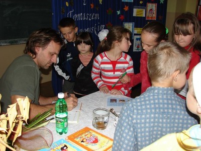 Aby promować czytelnictwo wśród dzieci i młodzieży Gminna Biblioteka Publiczna w Chełmcu zaprasza do swojej placówki znanych i cenionych twórców literatury, by młodzi odbiorcy mogli poznać ich osobiście. "Dla wielu dzieci jest to jedyna okazja, aby nabyć własną książkę, wzbogacić, a może nawet zainicjować domowy księgozbiór, którego posiadanie jest niezbywalnym składnikiem kultury czytelniczej" (Joanna Papuzińska w "Guliwerze" nr1/2004). 29 października zawitał w gościnne progi biblioteki p. Tomasz Trojanowski. Pisarz opowiedział o swoich pierwszych fascynacjach literackich oraz o tym, jak się powstały historie o kotach.