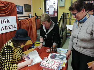 Malarka Grażyna Kulig - bohaterka książki - zaszczyciła czytelników biblioteki swoją obecnością na spotkaniu. W sposób niezwykle emocjonalny opowiedziała o najistotniejszych zdarzeniach ze swego życia.