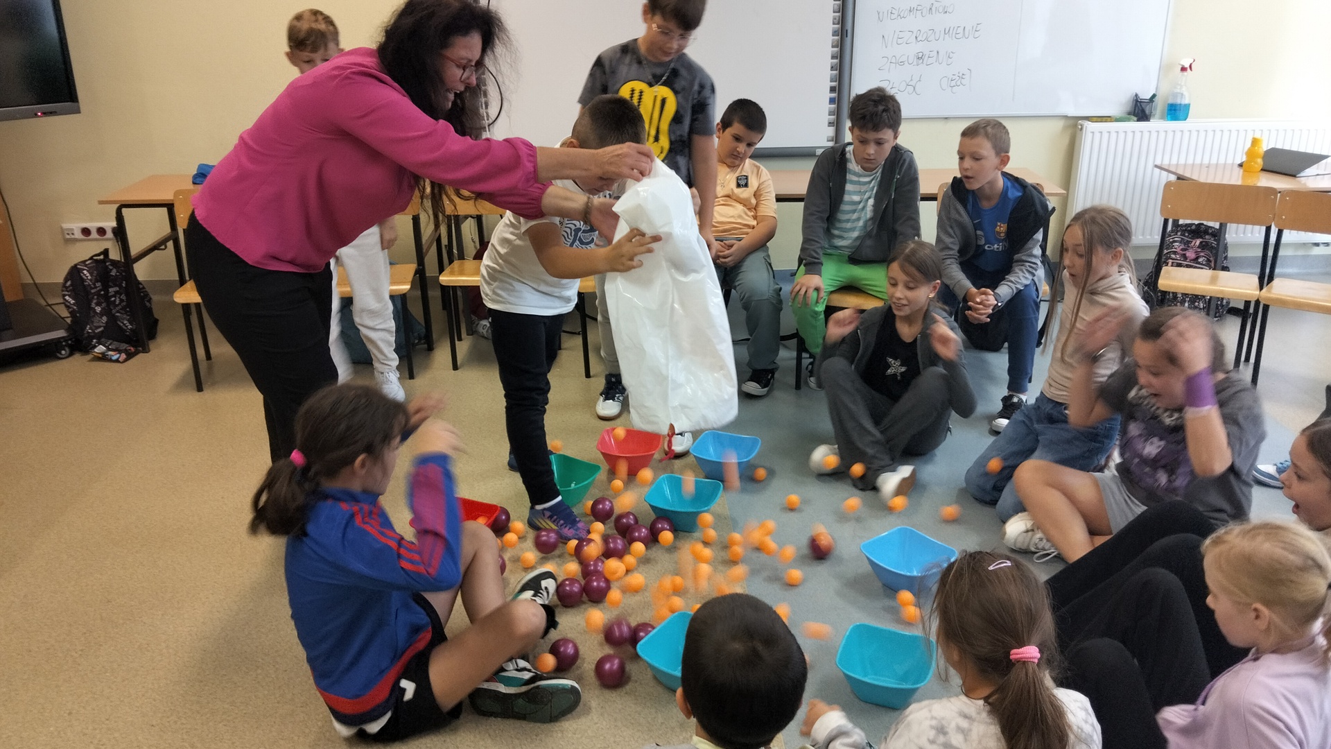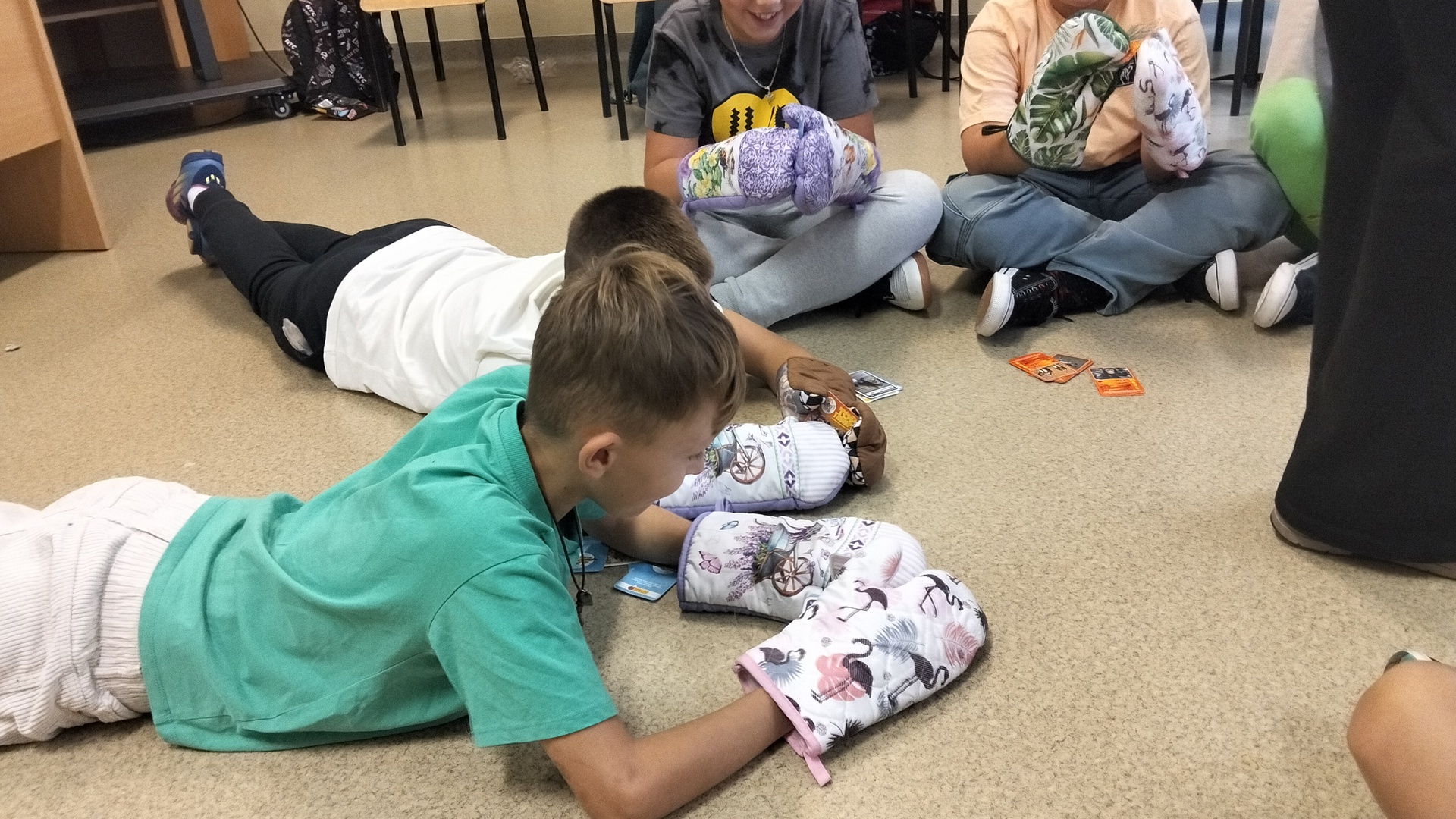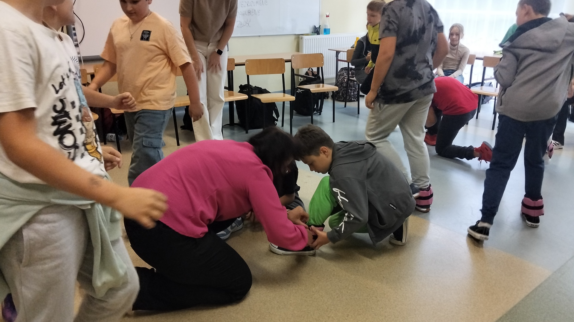 Nasz gość przeprowadził dla dzieci warsztaty oparte na treści książki "Sanatorium cudów". Uczniowie wykonywali kilkanaście zadań, które miały na celu pokazanie z jakimi wyzwaniami mierzą się w swoim życiu osoby niepełnosprawne. Choc na chwilę dzieci mogły przekonac się, jak to jest nie widzieć, nie słyszeć, nie móc się poruszać, być nadwrażliwym na dotyk.