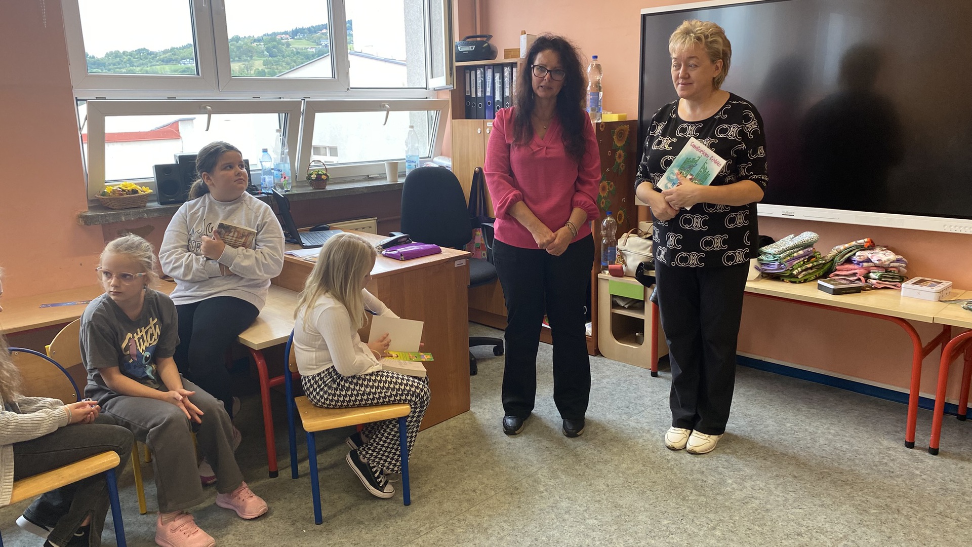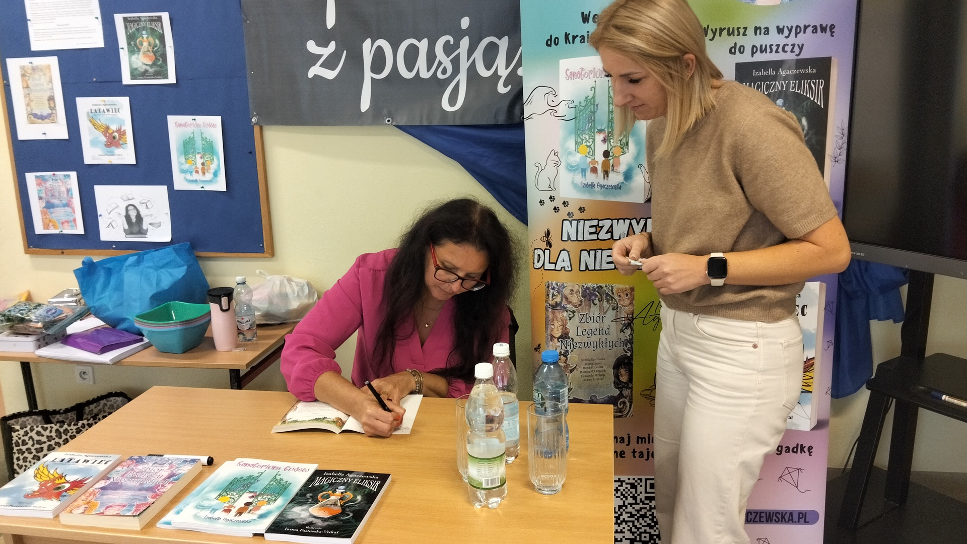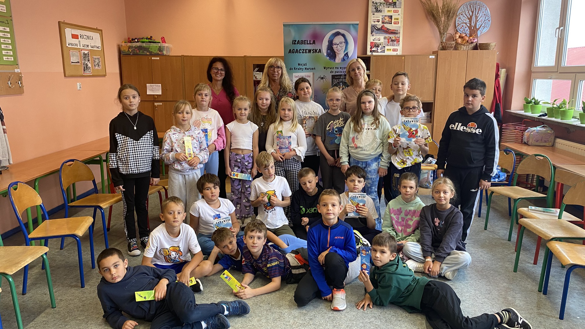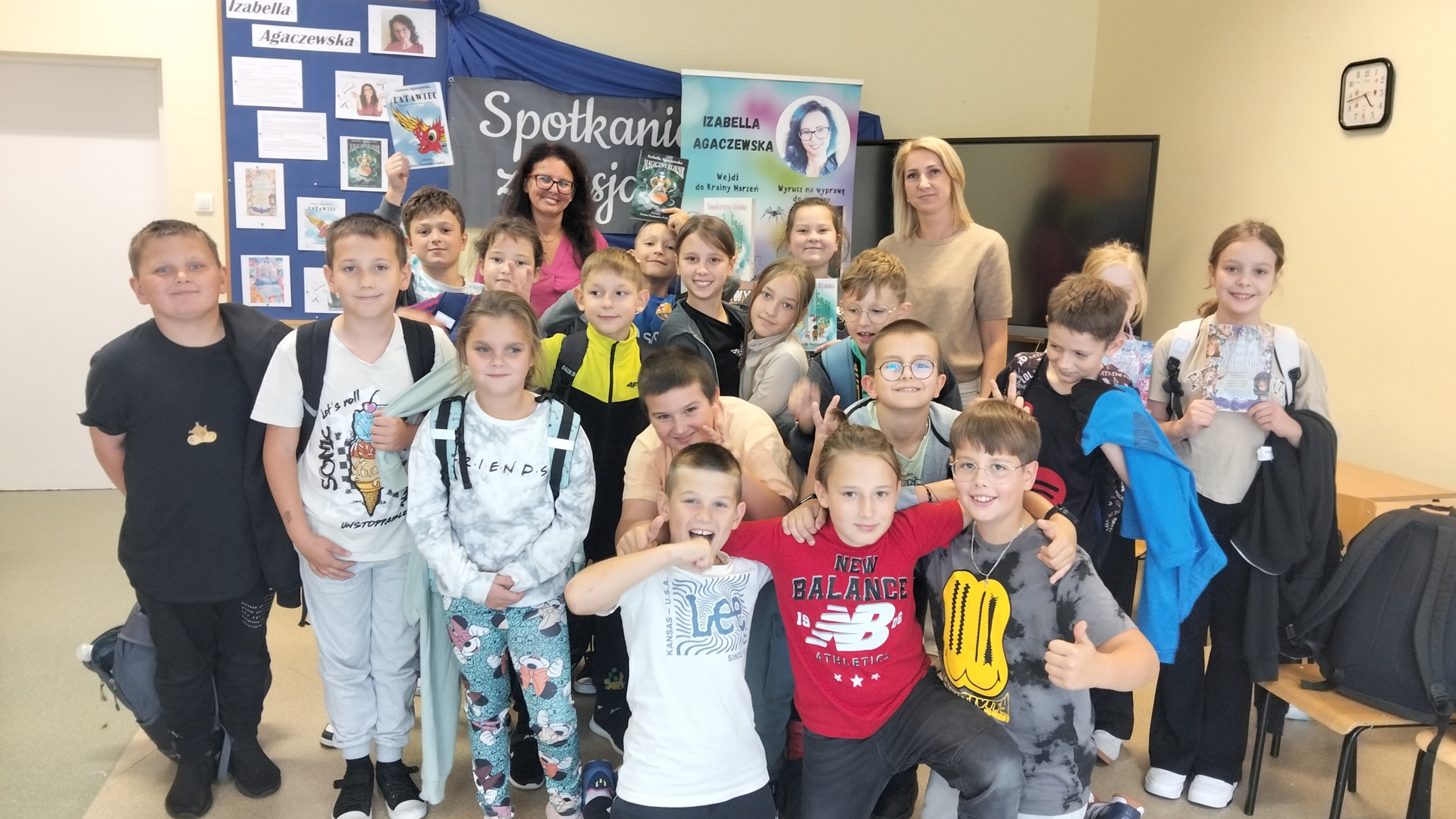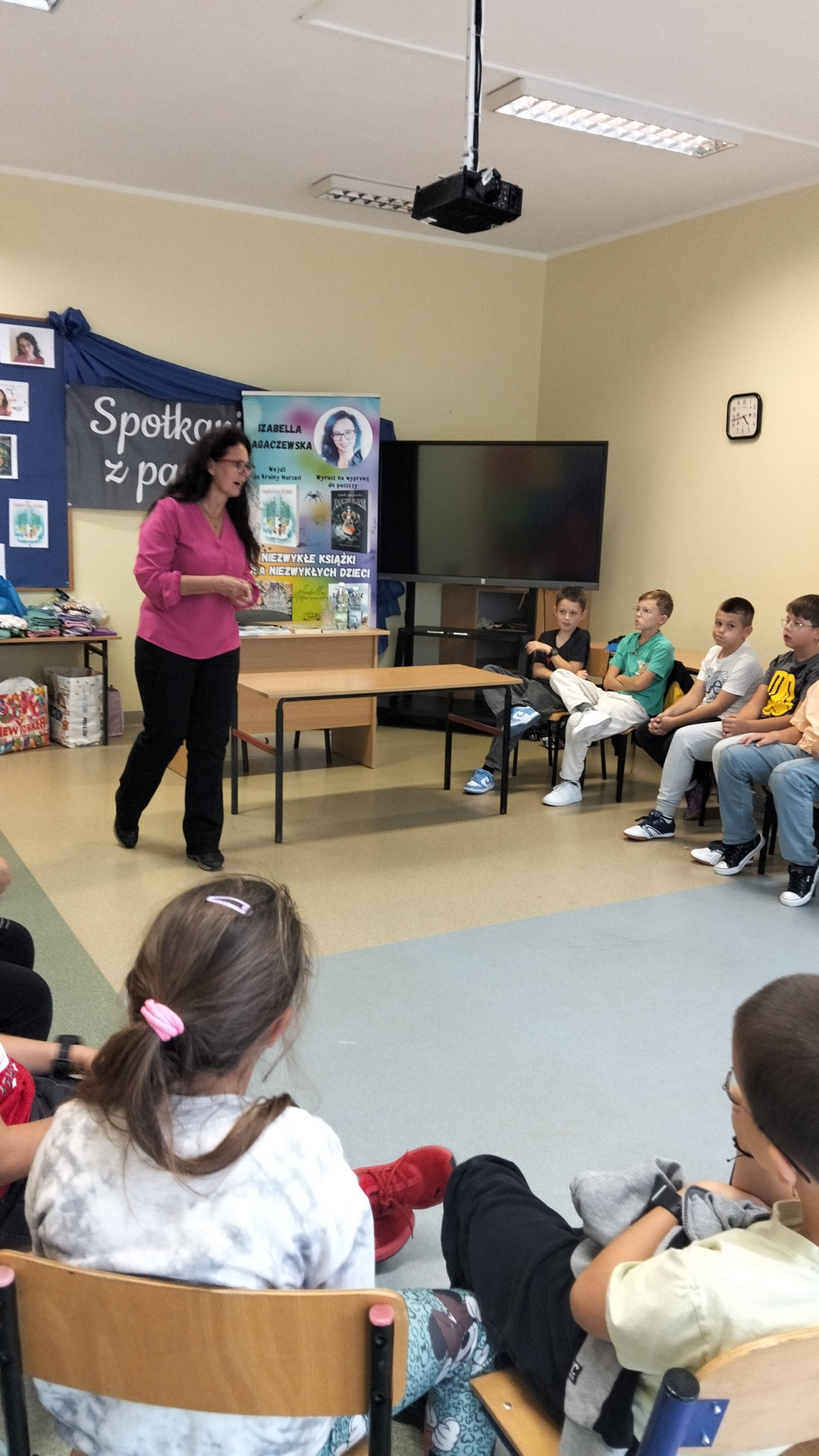 Wrześniowe spotkanie autorskie organizowane dla dzieci przez Gminną Bibliotekę Publiczną w Chełmcu tym razem odbyło się poza murami biblioteki. Z autorką p. Izabellą Agaczewską gościłyśmy w Szkole Podstawowej w Biczycach Dolnych w klasie IV oraz Szkole Podstawowej w Chełmcu w klasie III.