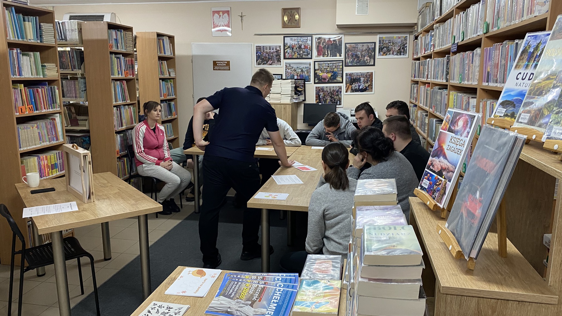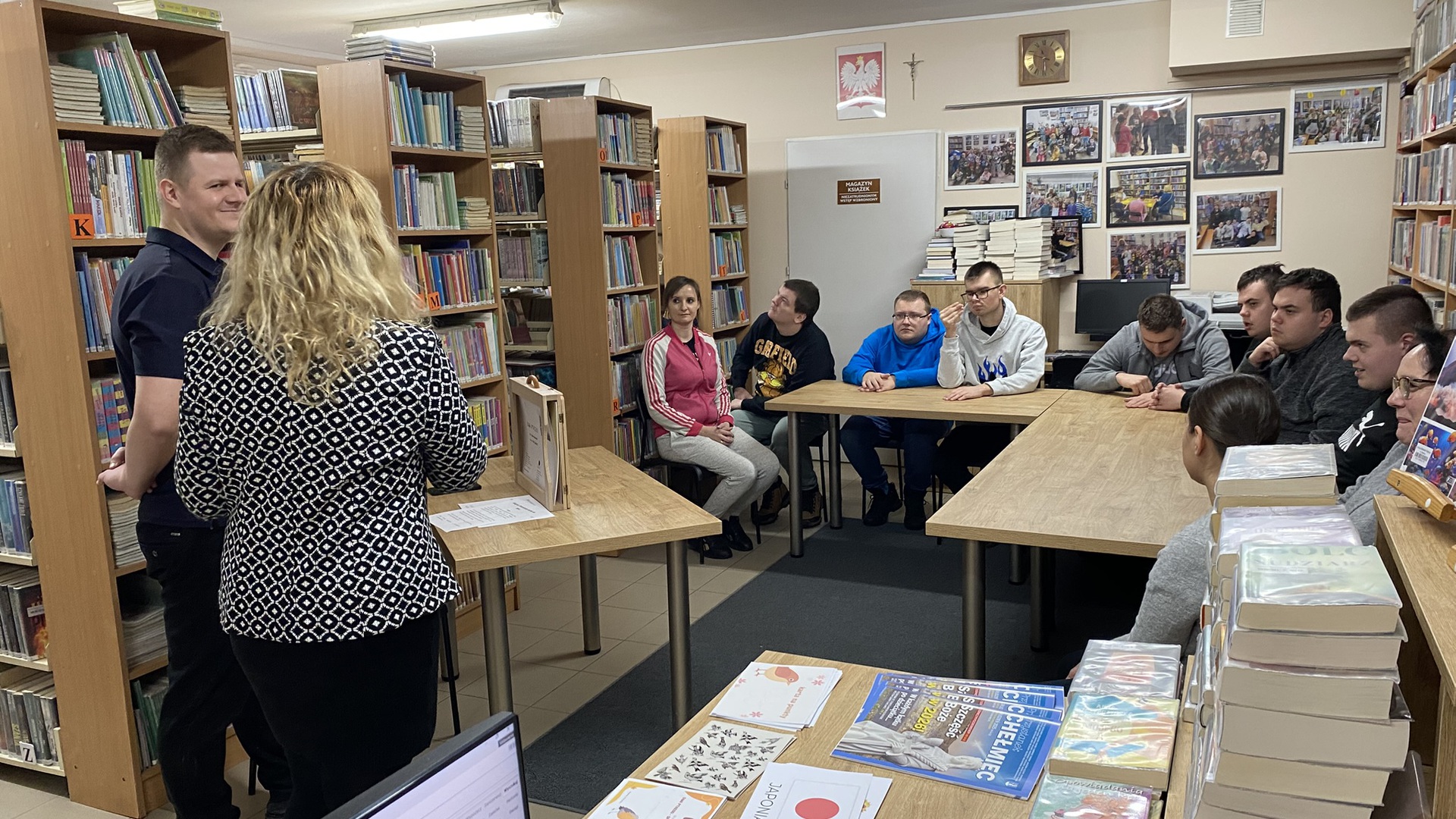 Kamishibai to technika czytania i prezentacji wywodząca się z Japonii, którą najprościej można opisać jako teatr obrazkowy. Takie właśnie przedstawienie zaprezentował w naszej bibliotece zaproszony przez nas pan Dominik. Za pomocą specjalnych kart z historią o ptaszkach, drewnianej skrzynce i nastrojowej muzyce wprowadził uczniów w świat japońskiego teatru. Były też pytania i konkursy z dyplomami.